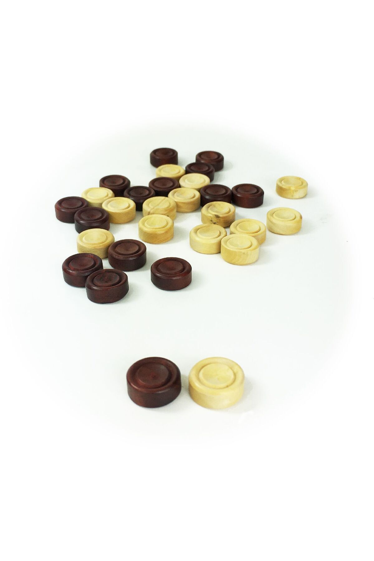 مدل: ۲۳۳۵۵ ترازوی تخته نرد کوچک ۱۷ میلیمتری از جنس چوب شمشاد، ترازوی ۱۵ تکه روشن + ۱۵ تکه تیره، قطر ترازو: ۱۷ میلیمتر