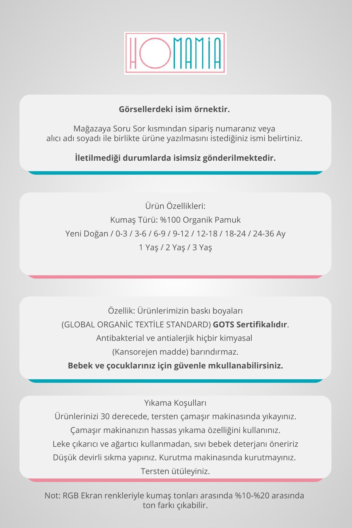 دارای گواهینامه GOTS (استاندارد جهانی نساجی ارگانیک) محصولات ما با طرحهای ضد باکتری و ضد حساسیت چاپ شدهاند. فاقد هرگونه مواد شیمیایی (مواد سرطانزا) هستند. پارچه ۱۰۰٪ پنبهای که پوست کودک شما را تحریک نمیکند. یقه قابل ارتجاع که به راحتی پوشیده و جدا میشود. دارای قفل دکمهای در پایین برای تعویض آسان پوشک. دستورالعمل شستشو: محصولات خود را با دمای ۳۰ درجه و از پشت و رو در ماشین لباسشویی بشویید. از چرخه ظریف ماشین لباسشویی استفاده کنید. توصیه میکنیم از مواد شوینده مایع کودک استفاده کنید.