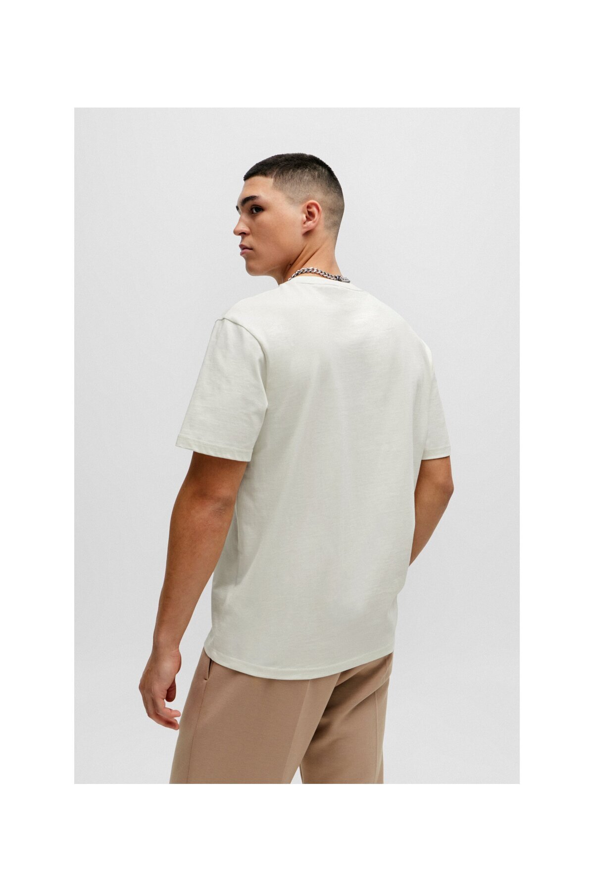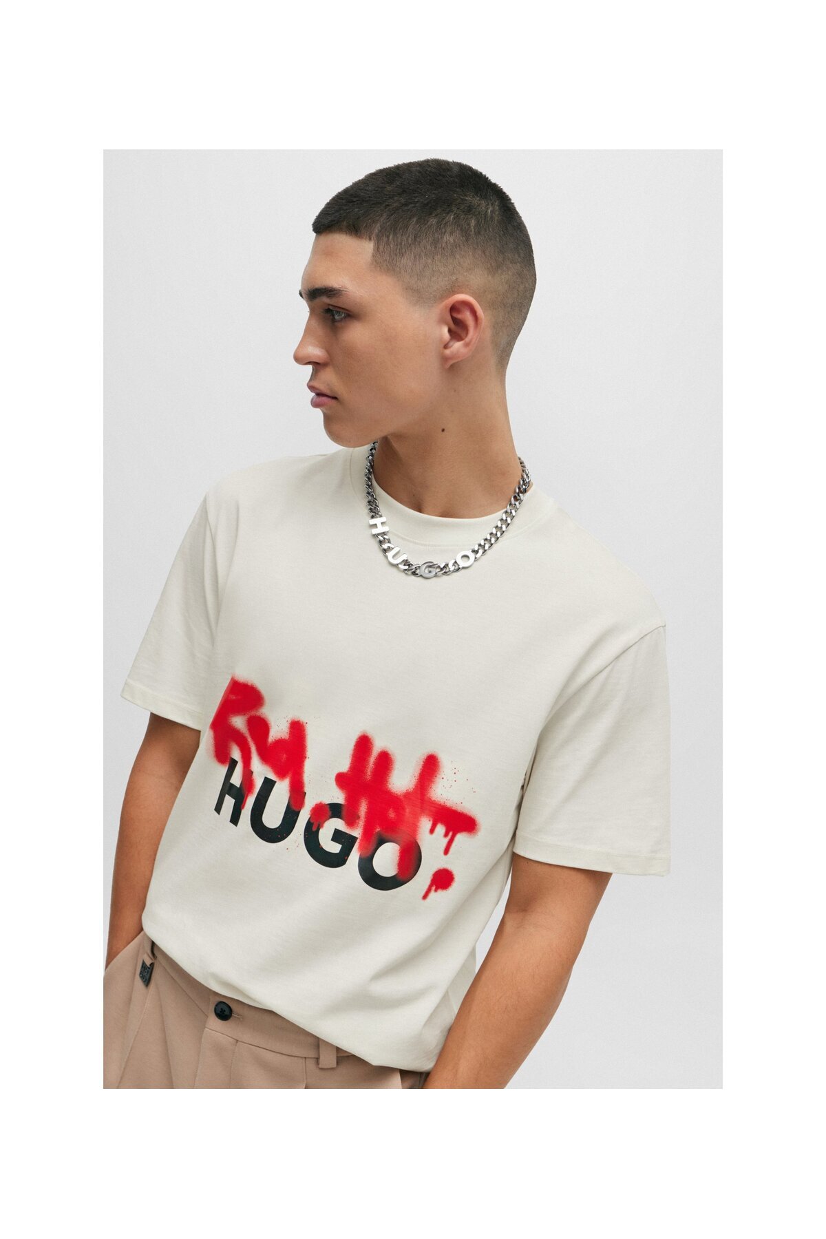 خرید اینترنتی تیشرت نخی طرحدار با برش آزاد و طرح اسپری چاپ برند هوگو HUGO اورجینال از Hello Emilio نمایندگی ترکیه