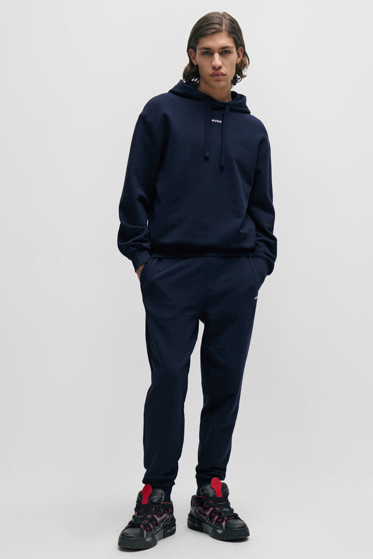 خرید اینترنتی سویشرت مردانه یقه کلاهدار سرمهای با لوگوی متضاد در مرکز سینه ۵۰۴۸۶۴۷۸-۴۰۵ برند هوگو HUGO اورجینال از Wejaar نمایندگی و فروشگاه معتبر ترکیه