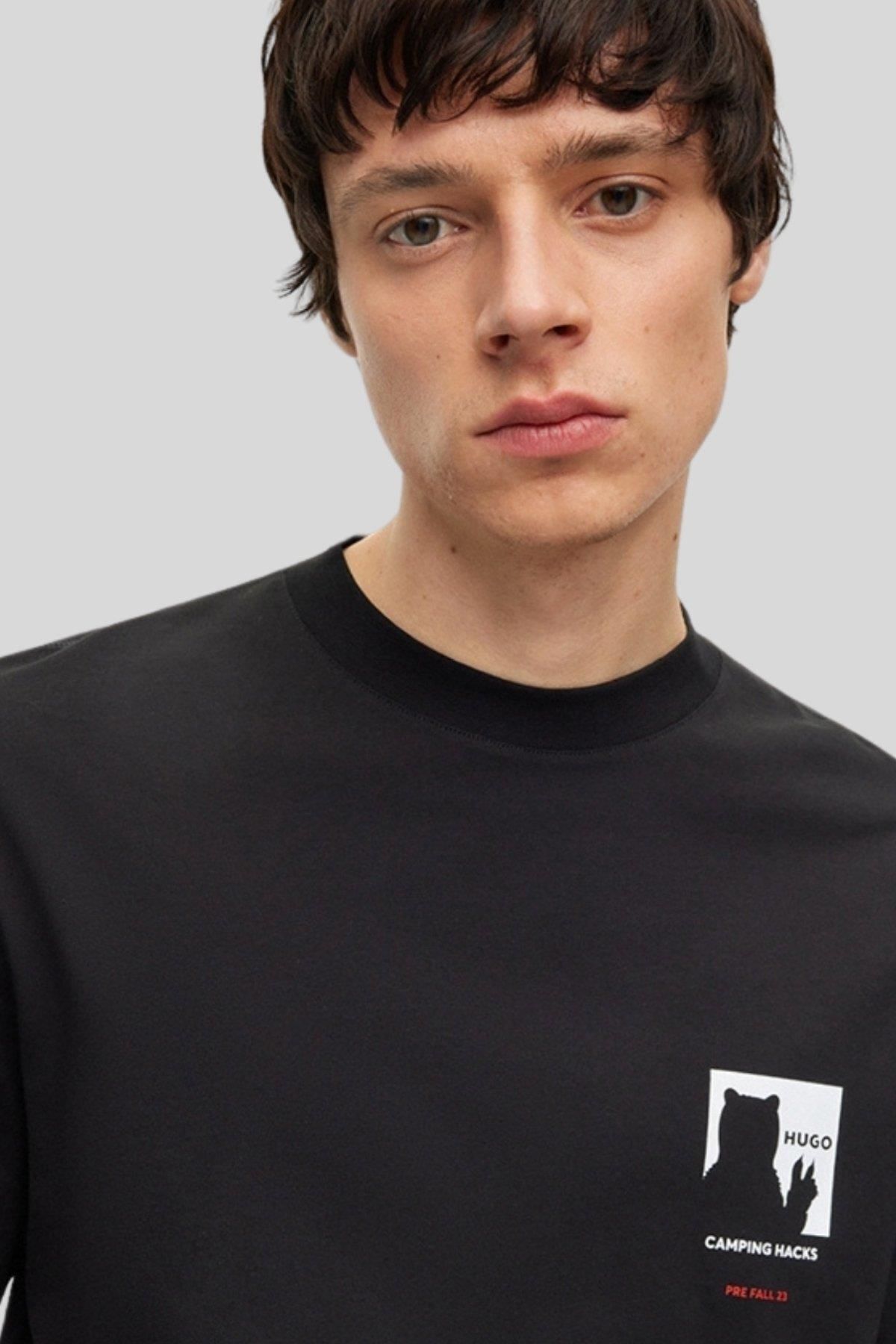 خرید اینترنتی تی‌شرت مردانه یقه گرد مشکی با چاپ پشت برند هوگو HUGO اورجینال از Hello Emilio نمایندگی ترکیه