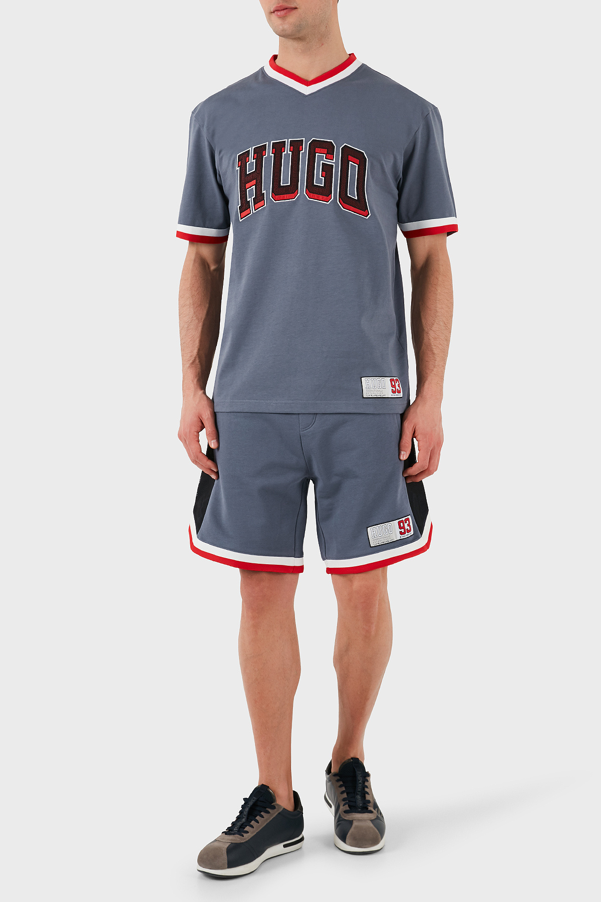 خرید اینترنتی تی شرت مردانه یقه هفت طرح دار، 100% پنبه، چاپ لوگو، کد 50510173، سایز 462 برند هوگو HUGO اورجینال از ExxeSelection نمایندگی ترکیه