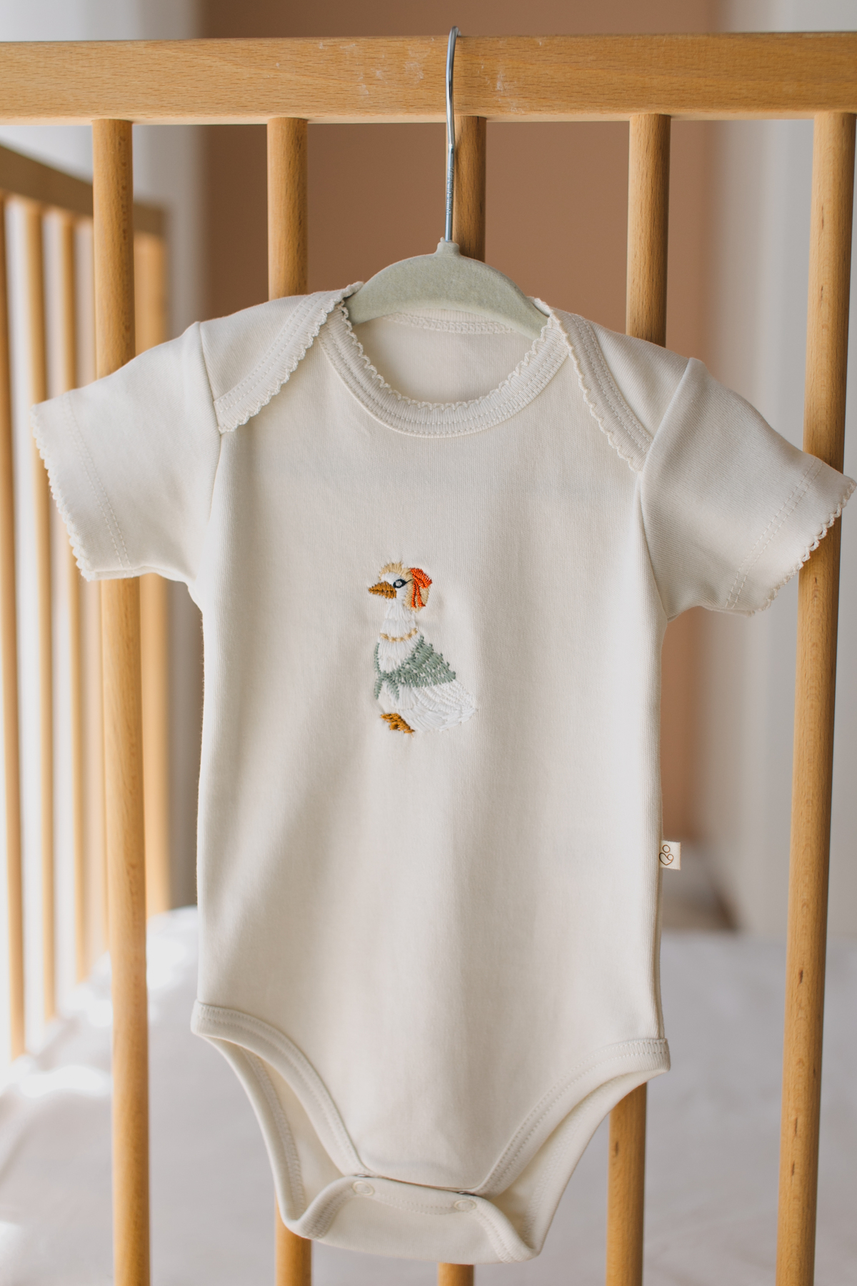 بادی ۱۰۰٪ پنبهای ممتاز، آستین کوتاه، گلدوزی شده و دکمهدار. به صورت ست ۲ عددی فروخته میشود. این بسته شامل یک بادی کرم رنگ و یک بادی دکمهدار رنگی با همان طرح گلدوزی است. پارچه ما مخصوص پوست حساس کودک شما بافته شده و با رنگهای طبیعی و دارای گواهینامه رنگآمیزی شده است. ساختار ۱۰۰٪ پنبهای آن به کودک شما اجازه تنفس میدهد و او را تحریک نمیکند و راحتی را تضمین میکند. دستورالعمل شستشو