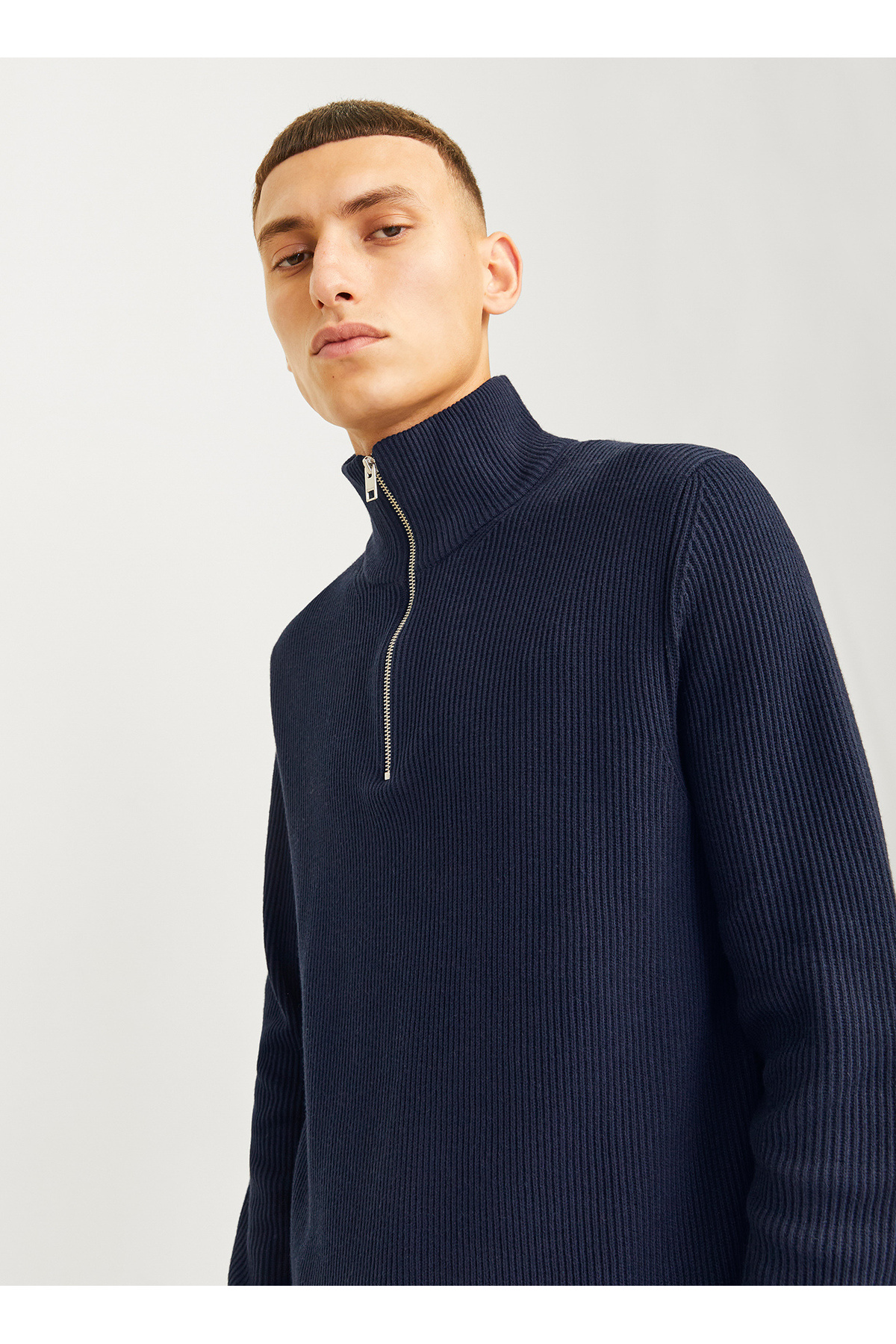 خرید اینترنتی ژاکت A-Form Fit مردانه آبی سرمه ای 12257773_JJEPERFECT KNIT HALF ZIP S برند جک اند جونز Jack & Jones اورجینال از BOYNER نمایندگی ترکیه