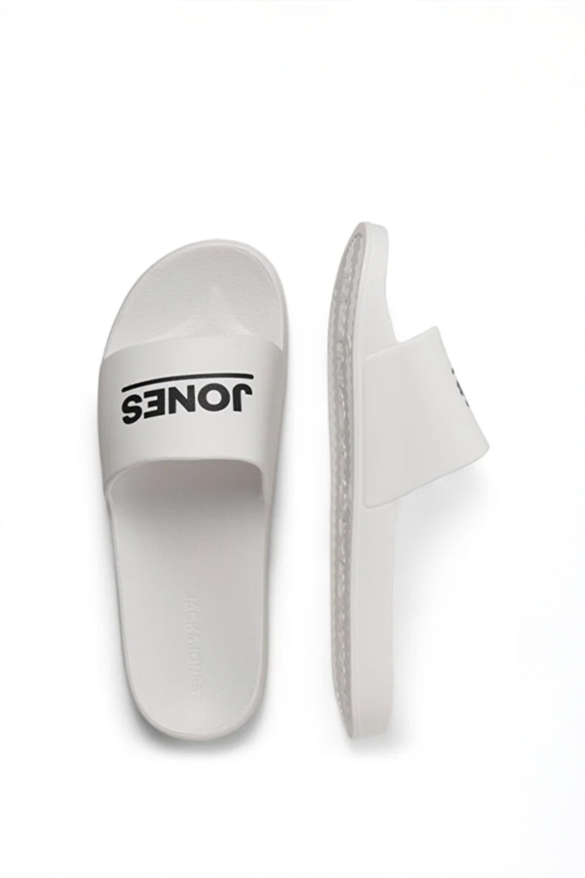 خرید اینترنتی دمپایی سفید شیک و راحت برای استفاده روزانه و ساحلی 12236477 لوگوی برند مردانه برند جک اند جونز Jack & Jones اورجینال از Sportuel نمایندگی ترکیه