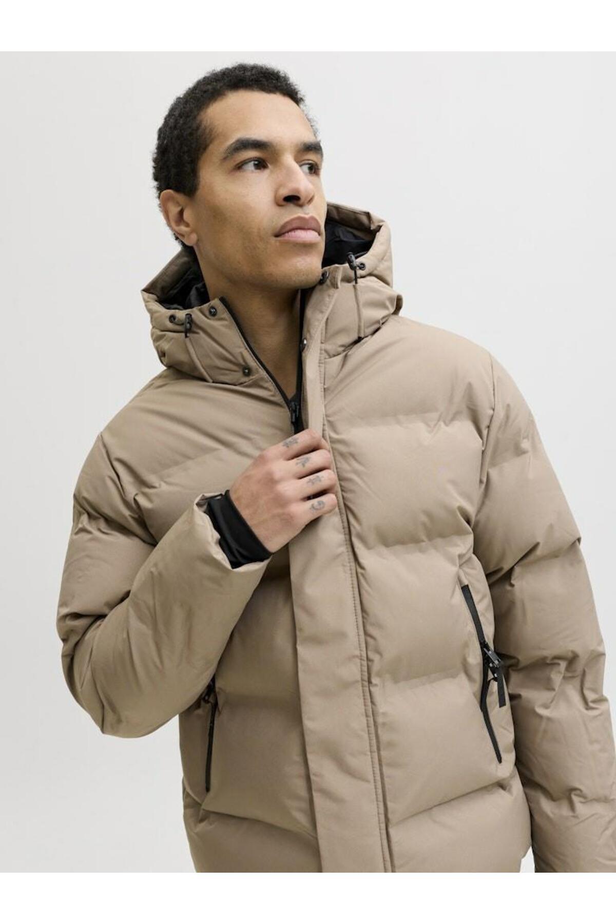 خرید اینترنتی کاپشن پفی مردانه Jcofusion بژ 12285919-Deserttau برند جک اند جونز Jack & Jones اورجینال از Tacreo نمایندگی ترکیه