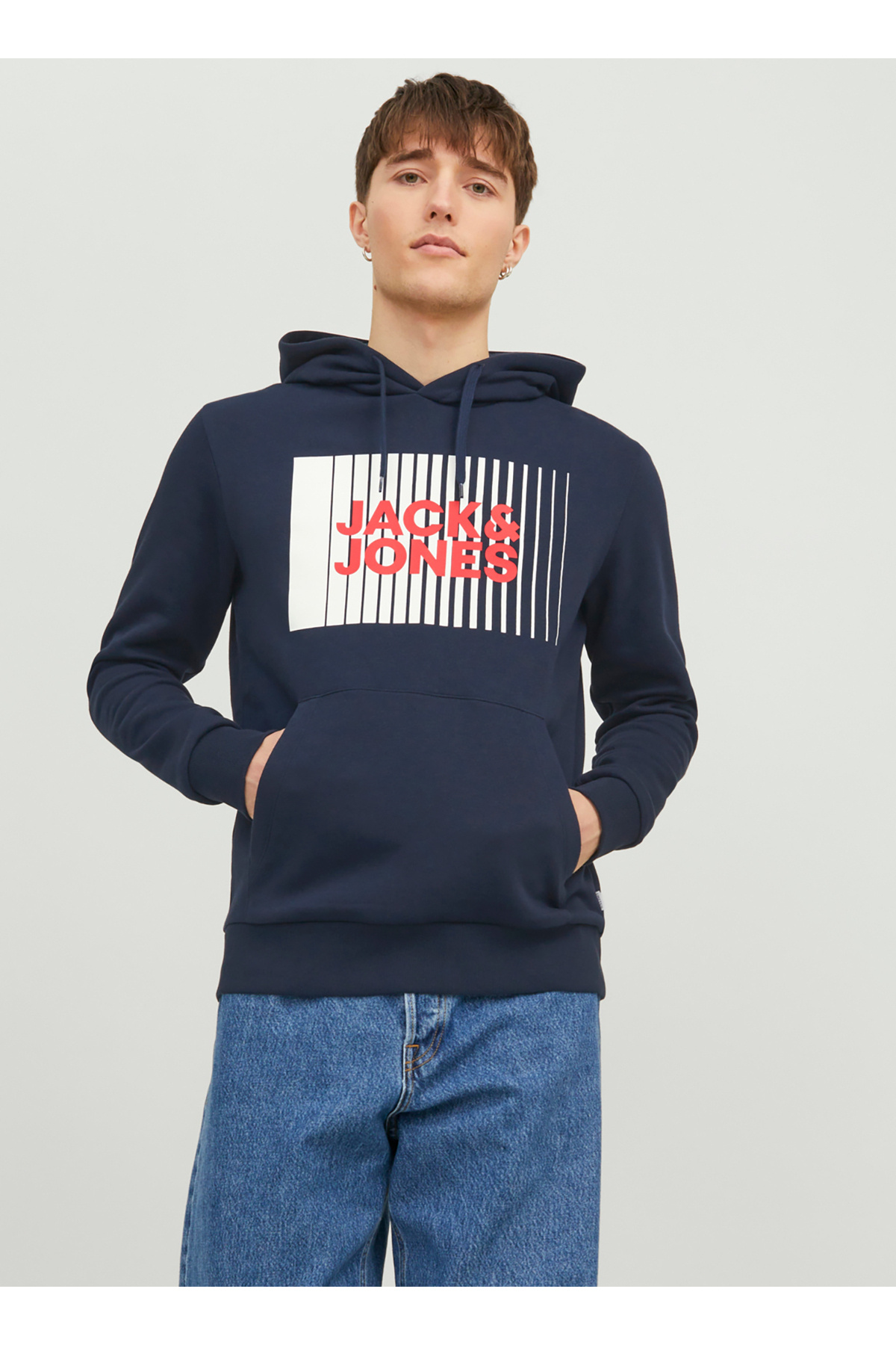 خرید اینترنتی سویشرت مردانه یقه سرمه ای 12233599_JJECORP LOGO SWEAT HOOD PL برند جک اند جونز Jack & Jones اورجینال از Step Ups نمایندگی ترکیه