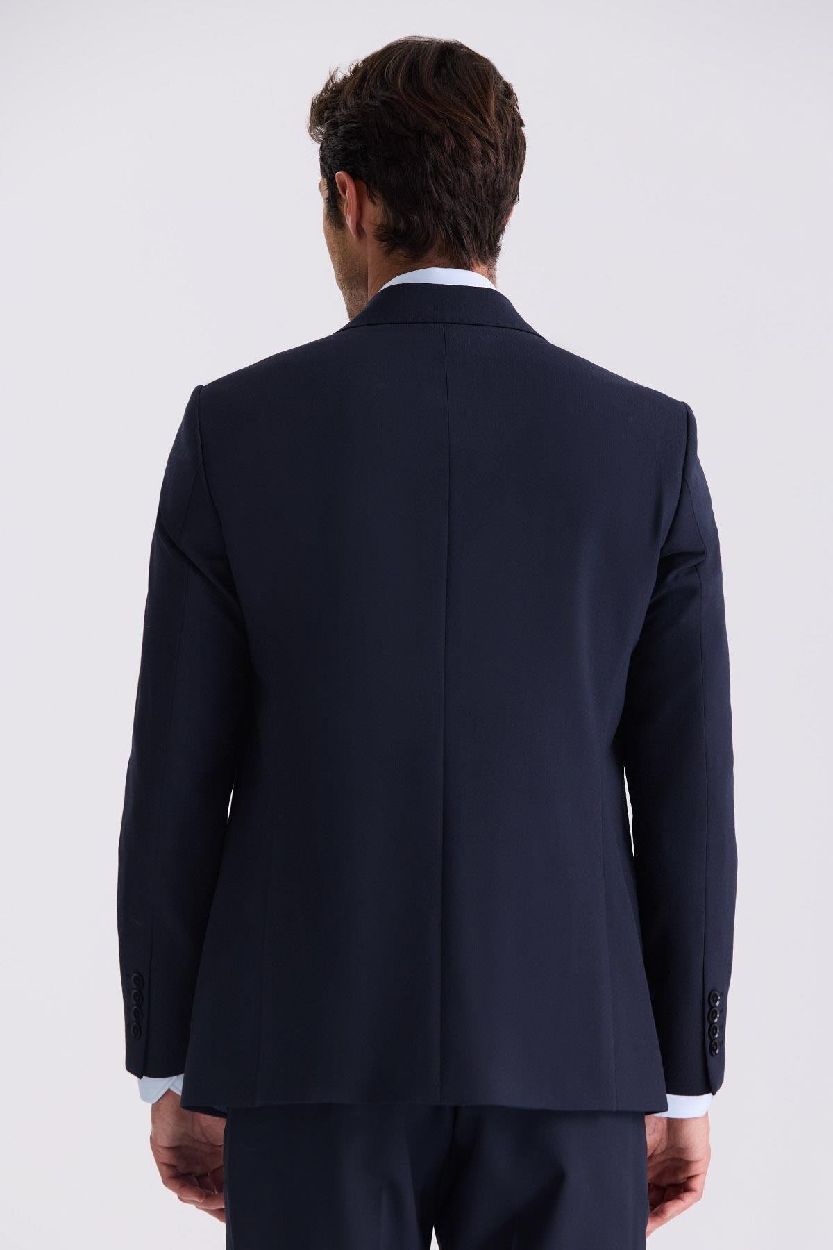 خرید اینترنتی کت و شلوار پشمی یقه نوک تیز کلاسیک آبی سرمه ای برند جاکامن Jakamen اورجینال از Jakamen نمایندگی ترکیه