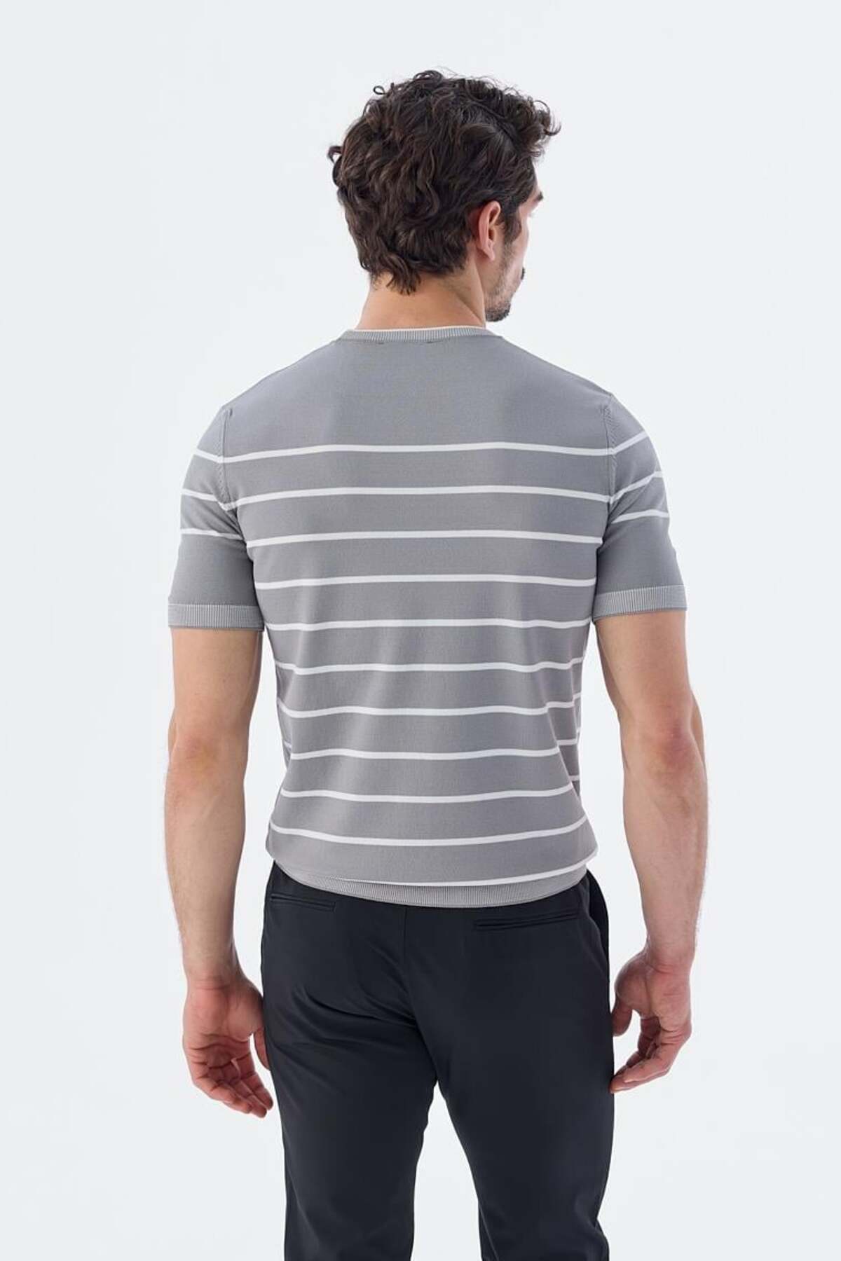 خرید اینترنتی تی شرت بافتنی یقه راه راه باریک سفید خاکستری برند جاکامن Jakamen اورجینال از Jakamen نمایندگی ترکیه