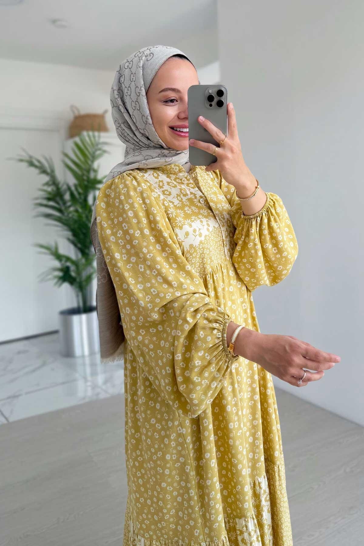 لباس بلند آستین بلند گلدار زنانه | Ka Hijab KH-2083