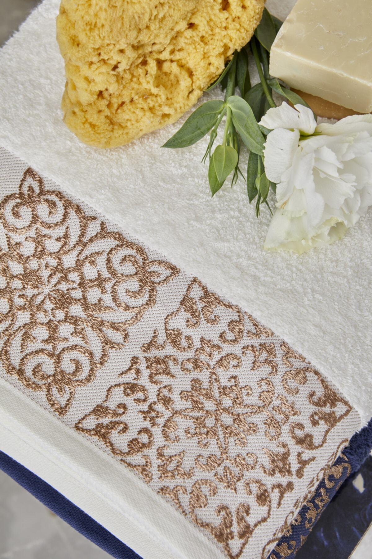 خرید اینترنتی سرویس حمام خانوادگی سالواتوره مدل Offwhite Navy Blue 100% Cotton Jacquard برند کاراجا Home Karaca Home اورجینال از evises نمایندگی و فروشگاه معتبر ترکیه