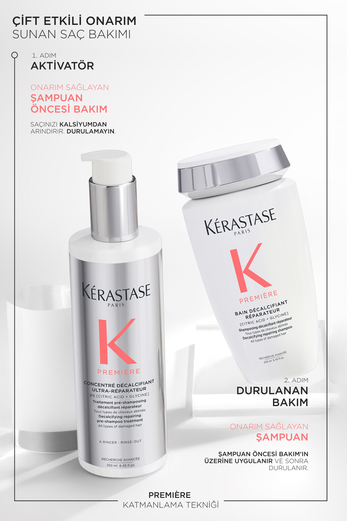 Set Content Premiere Bain Decalcifiant Reparateur شامپو ترمیم کننده موهای آسیب دیده 250 میلی لیتر Premiere Concentre Décalcifiant Ultra-Réparateur Repairing Pre-Shampoo Care 250 ml تعداد بسته A: 3 هدف استفاده: مغذی / ترمیم کننده مو یونیسکس