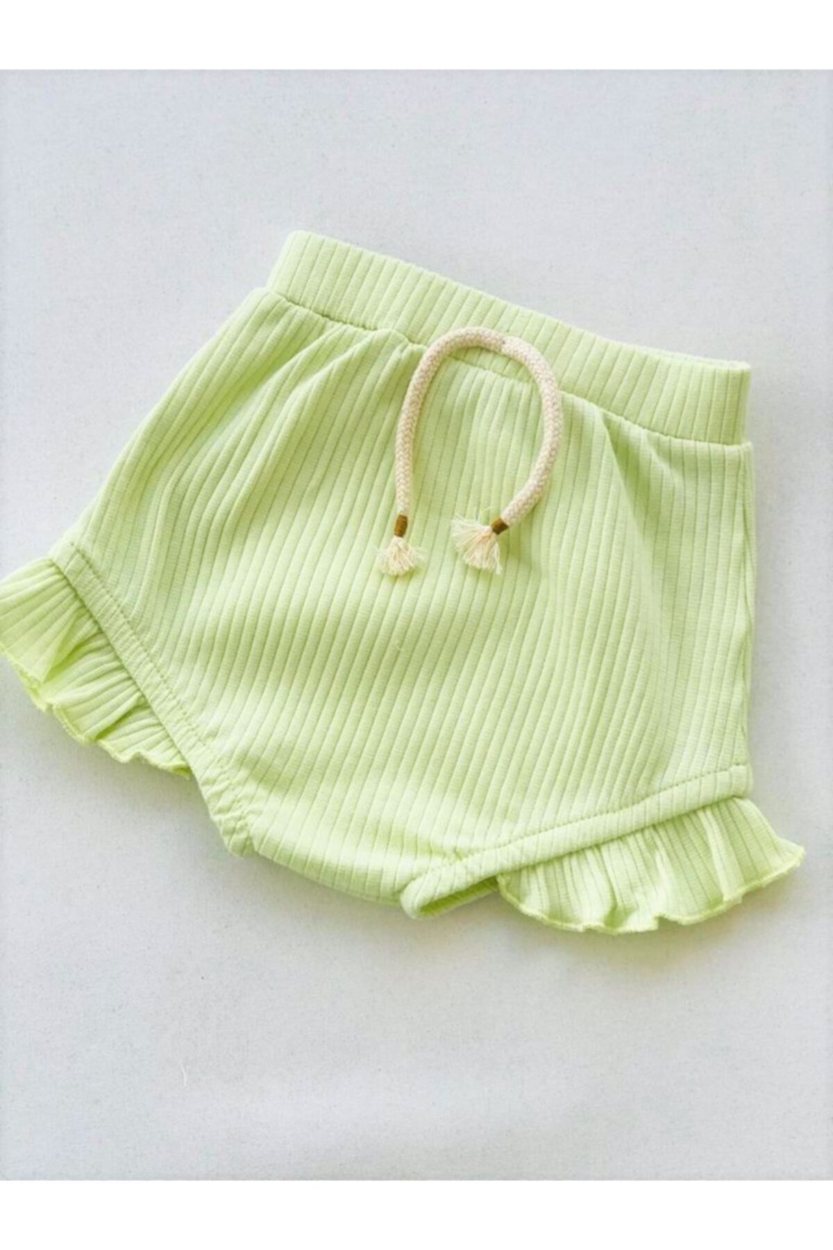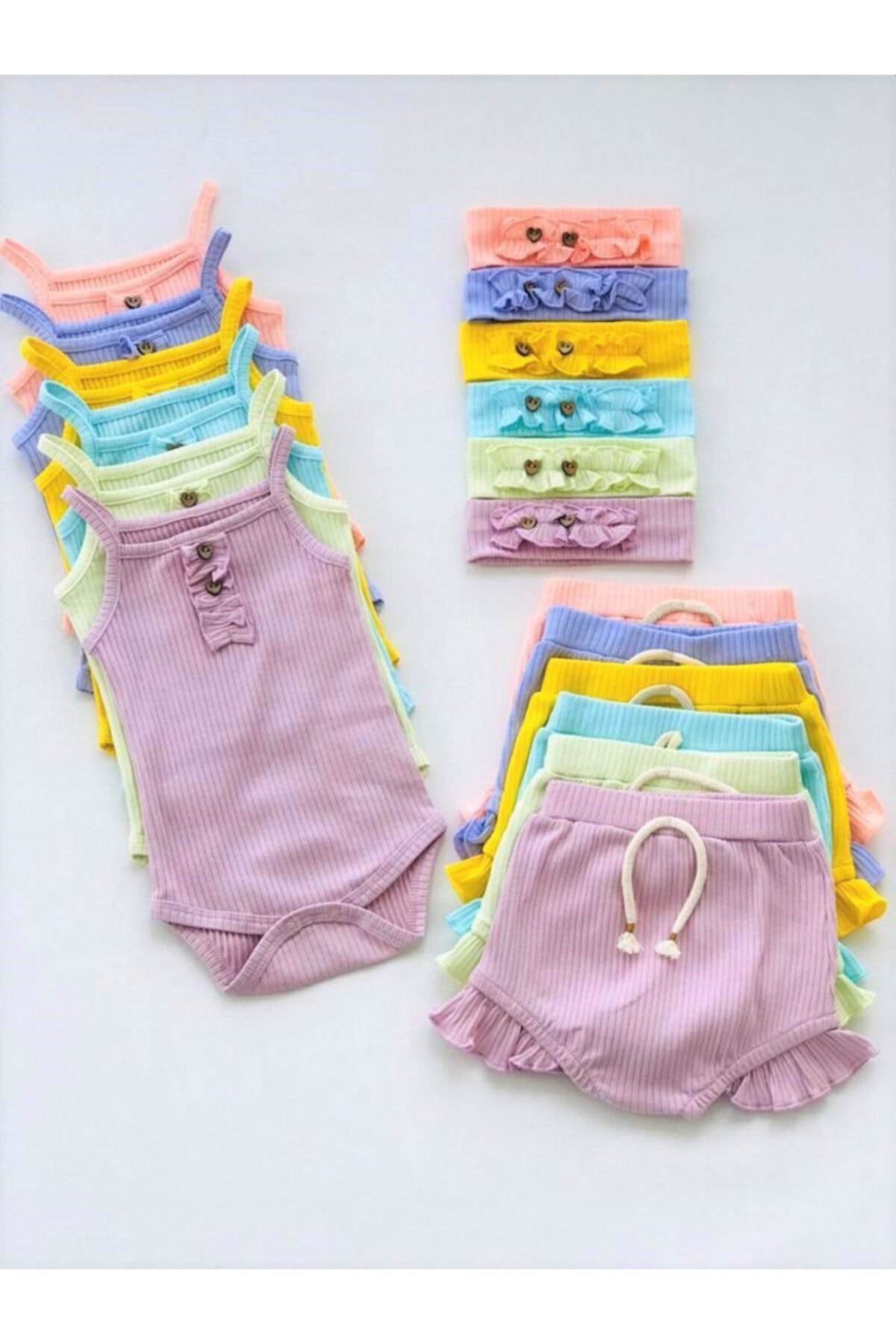 خرید اینترنتی شورت بچه گانه دخترانه طرح دار یقه گرد با دکمه های فشاری و روبان، ست 3 عددی برند کیداکسی Kidaxi اورجینال از MiniVestito نمایندگی ترکیه