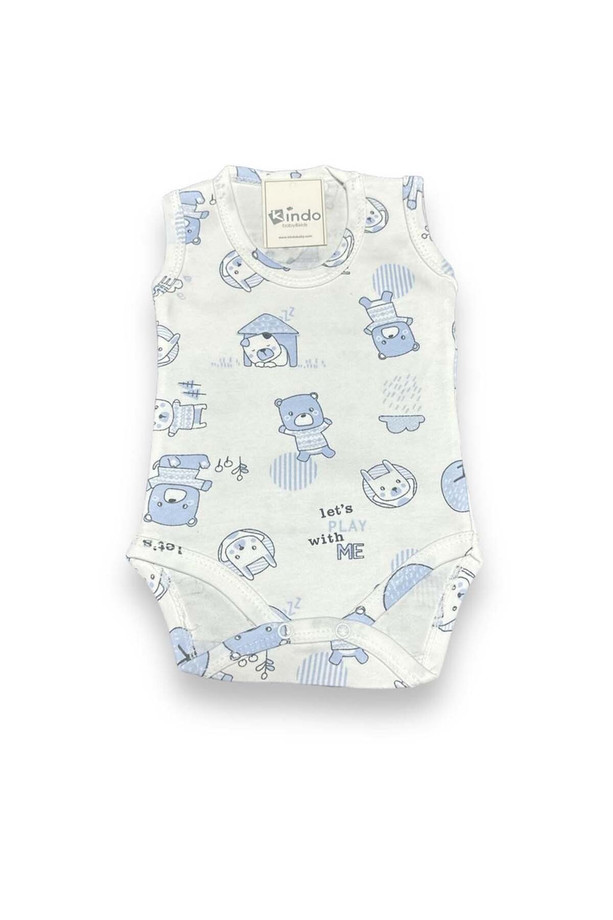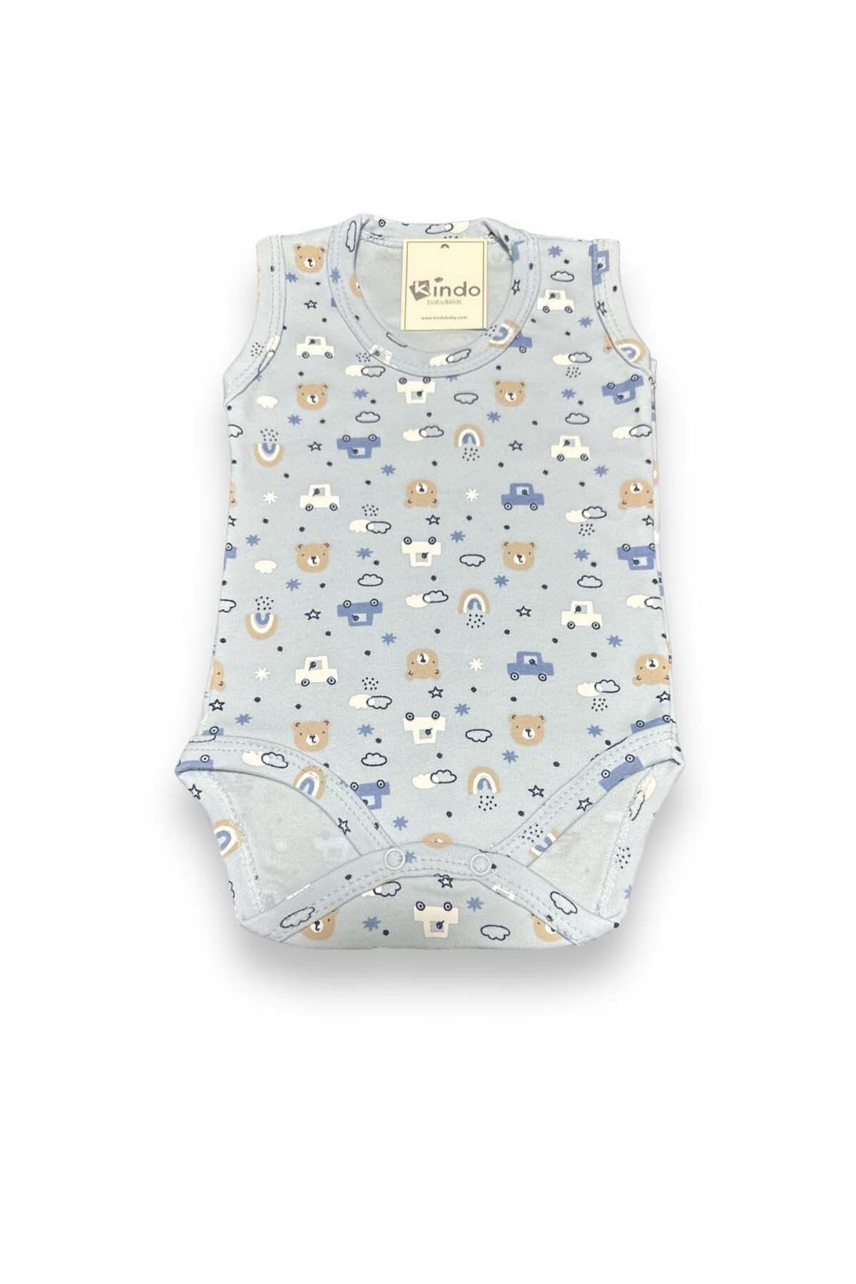 بادی نوزادی پسرانه کیندو بیبی بدون آستین طرح دار | Kindo Baby 406