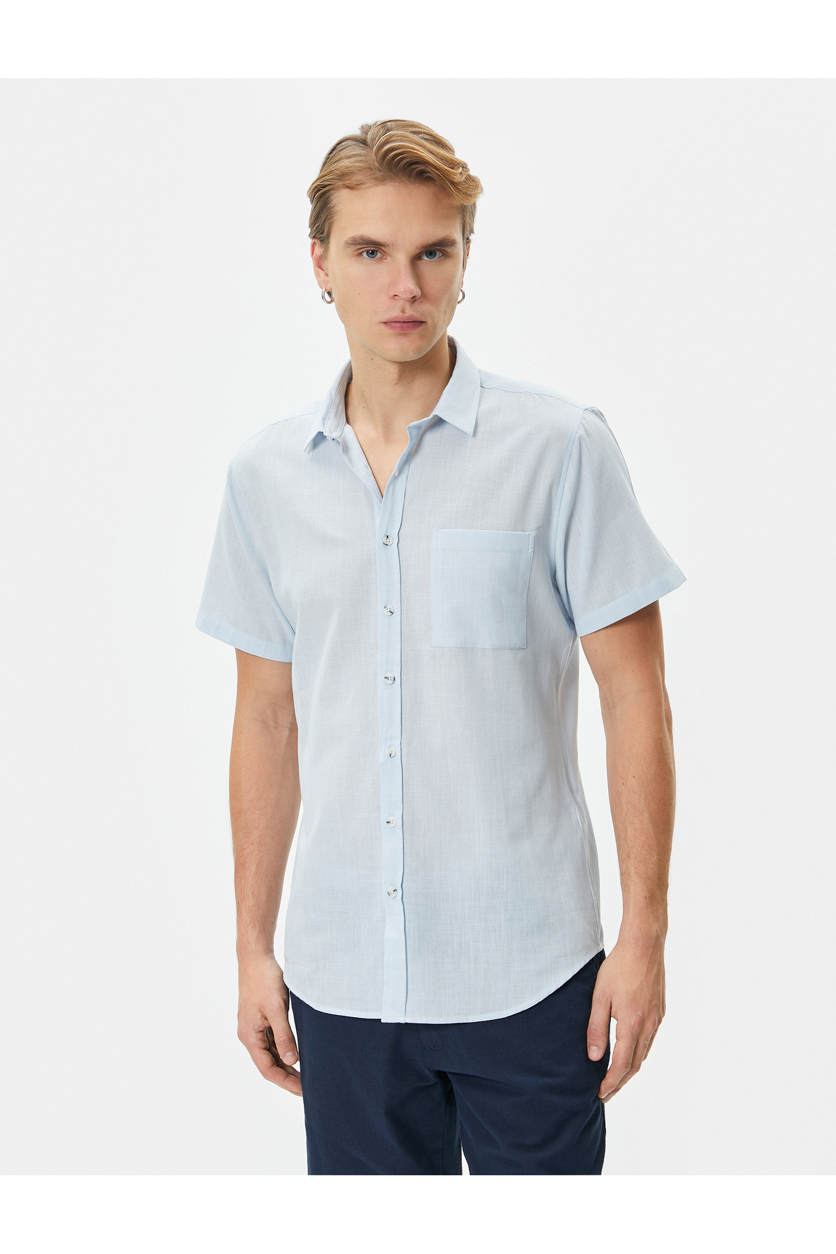 خرید اینترنتی پیراهن آستین کوتاه، فیت باریک، یقه کلاسیک، دکمهدار، دارای جیب برند کوتون Koton اورجینال از Koton نمایندگی ترکیه