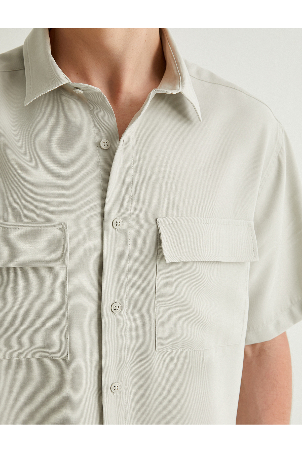 خرید اینترنتی پیراهن آستین کوتاه با دکمه و جیب زیپدار، جنس پارچه ویسکوز، فرم معمولی. برند کوتون Koton اورجینال از Trendyol نمایندگی ترکیه