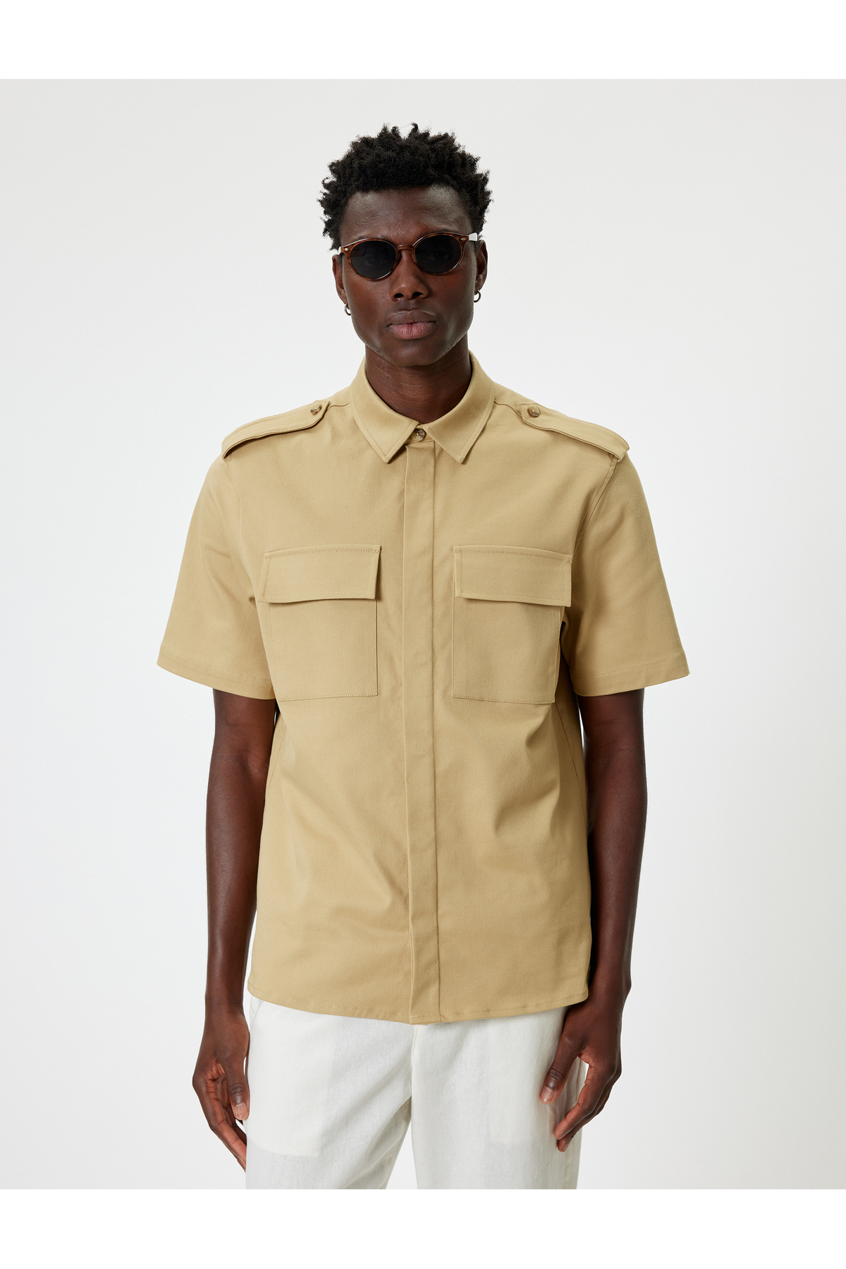 خرید اینترنتی پیراهن آستین کوتاه با جیب زیپدار، دکمهدار، جنس نخ، فرم معمولی. برند کوتون Koton اورجینال از Koton نمایندگی ترکیه