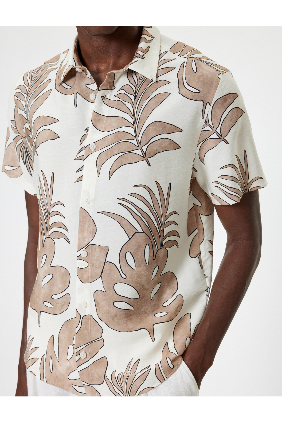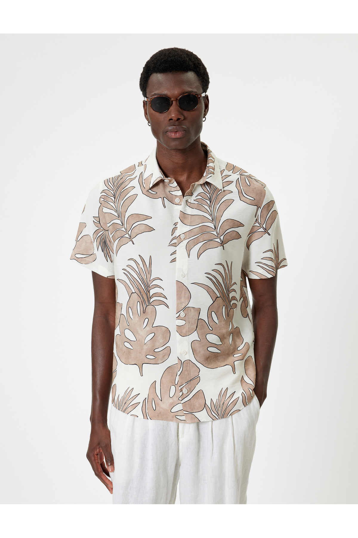 خرید اینترنتی پیراهن هاوایی، آستین کوتاه، طرح برگ، سایز معمولی برند کوتون Koton اورجینال از Trendyol نمایندگی ترکیه