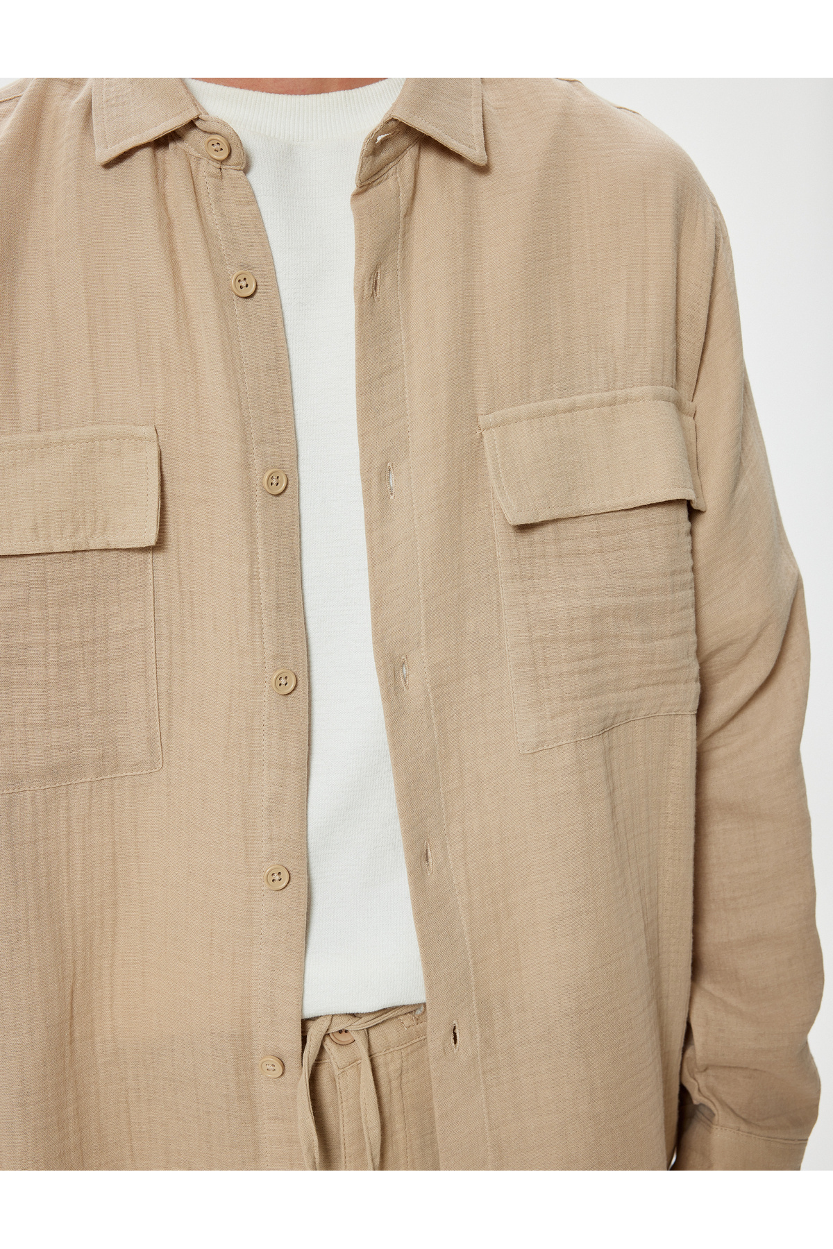 خرید اینترنتی پیراهن آستین بلند با جیب از جنس پارچهی ململ، جنس کتان، سایز معمولی برند کوتون Koton اورجینال از Koton نمایندگی ترکیه