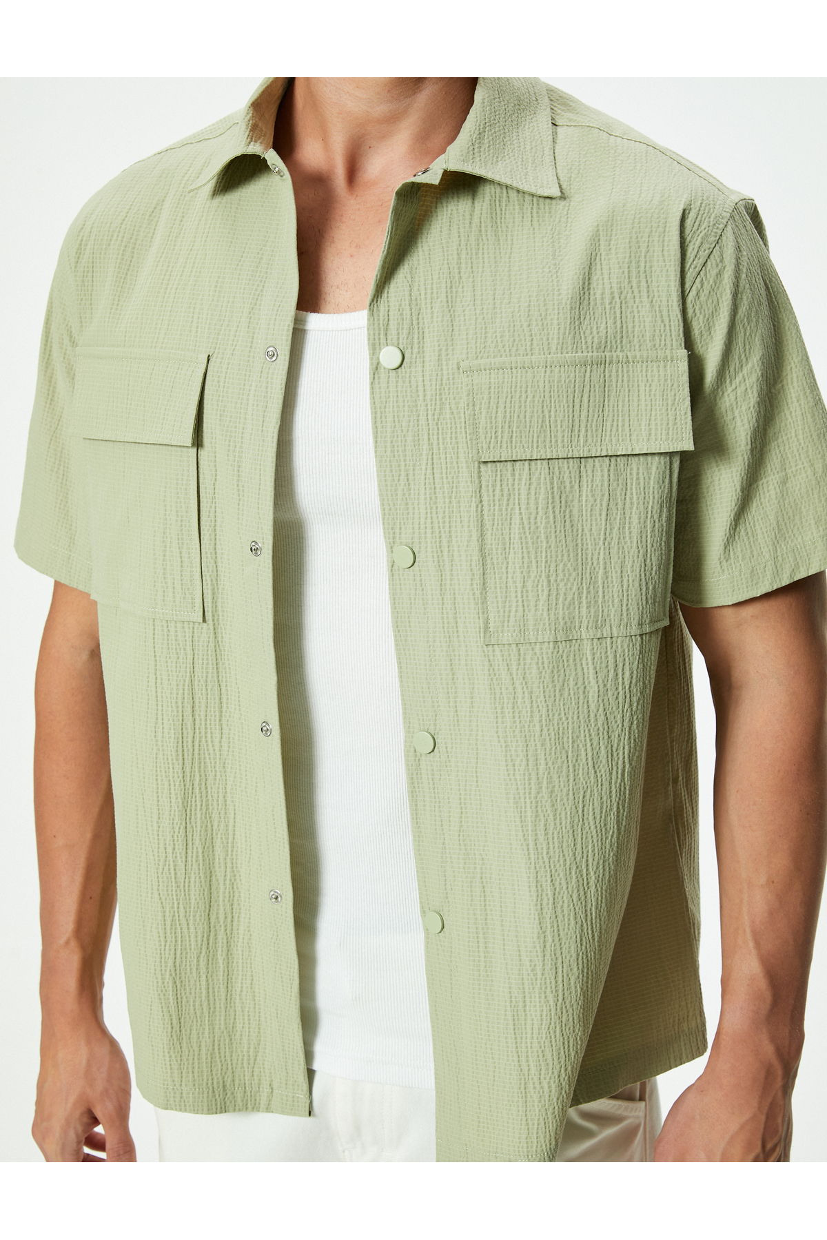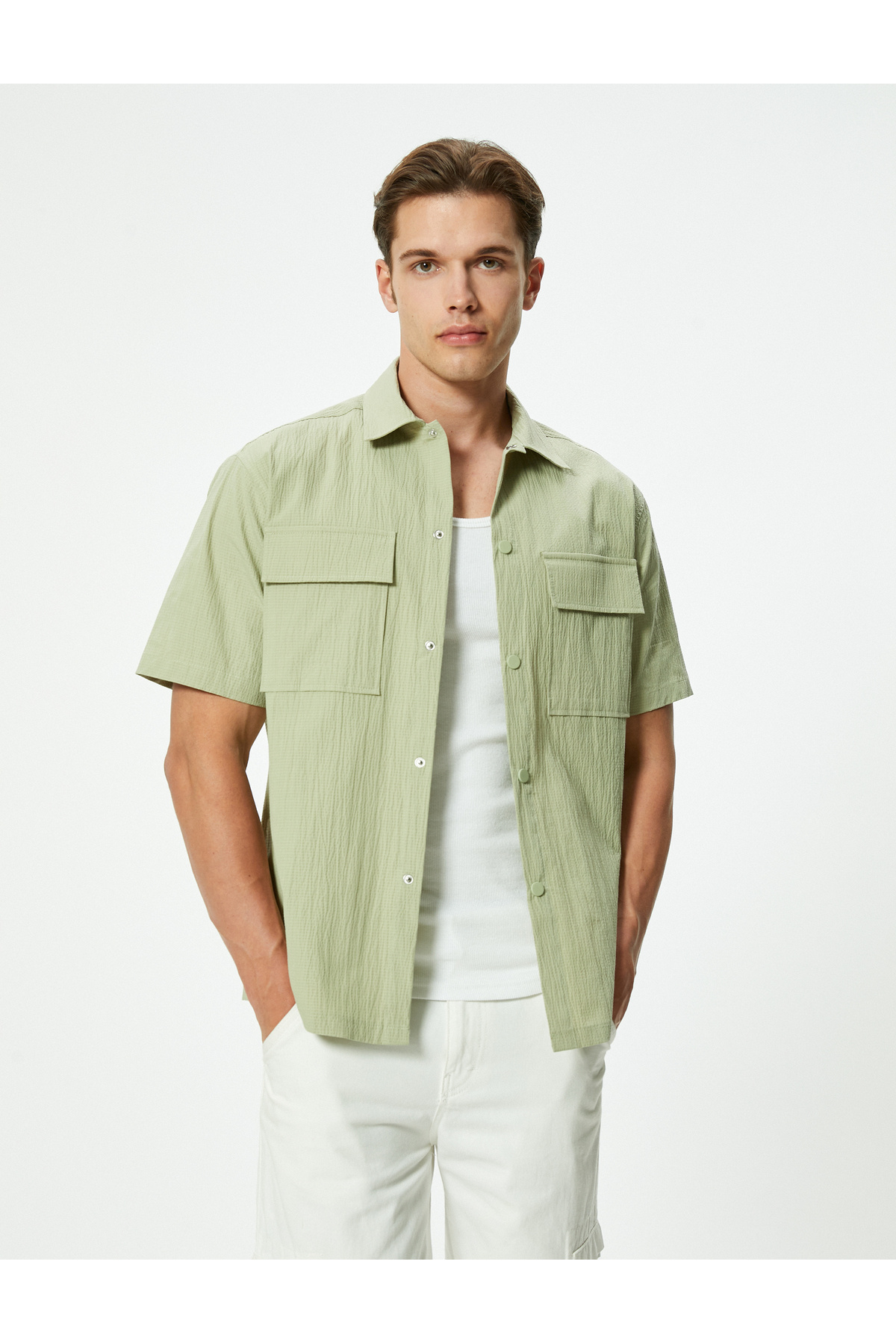 خرید اینترنتی پیراهن آستین کوتاه با دکمه، دارای جیب زیپدار، جنس نخ، فرم معمولی. برند کوتون Koton اورجینال از Koton نمایندگی ترکیه