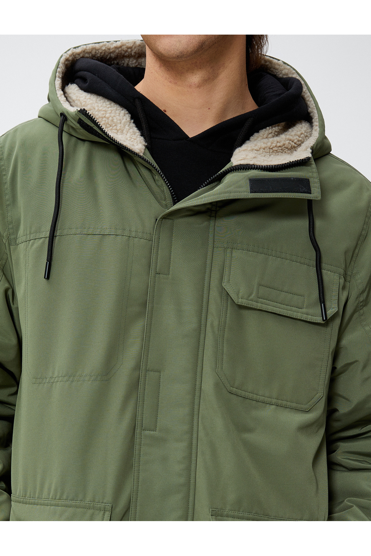 احترام به زندگی | کاپشن کاپشن کلاهدار با زیپ، جیب و جزئیات یقه مخمل. | این محصول حاوی نخ پلیآمید بازیافتی است.