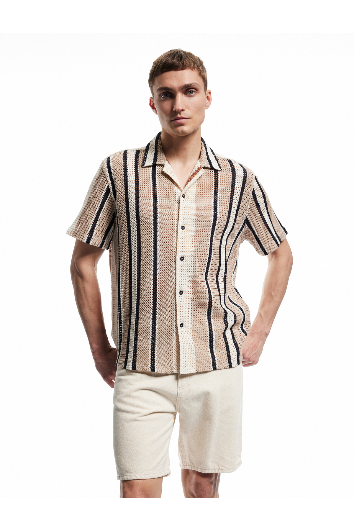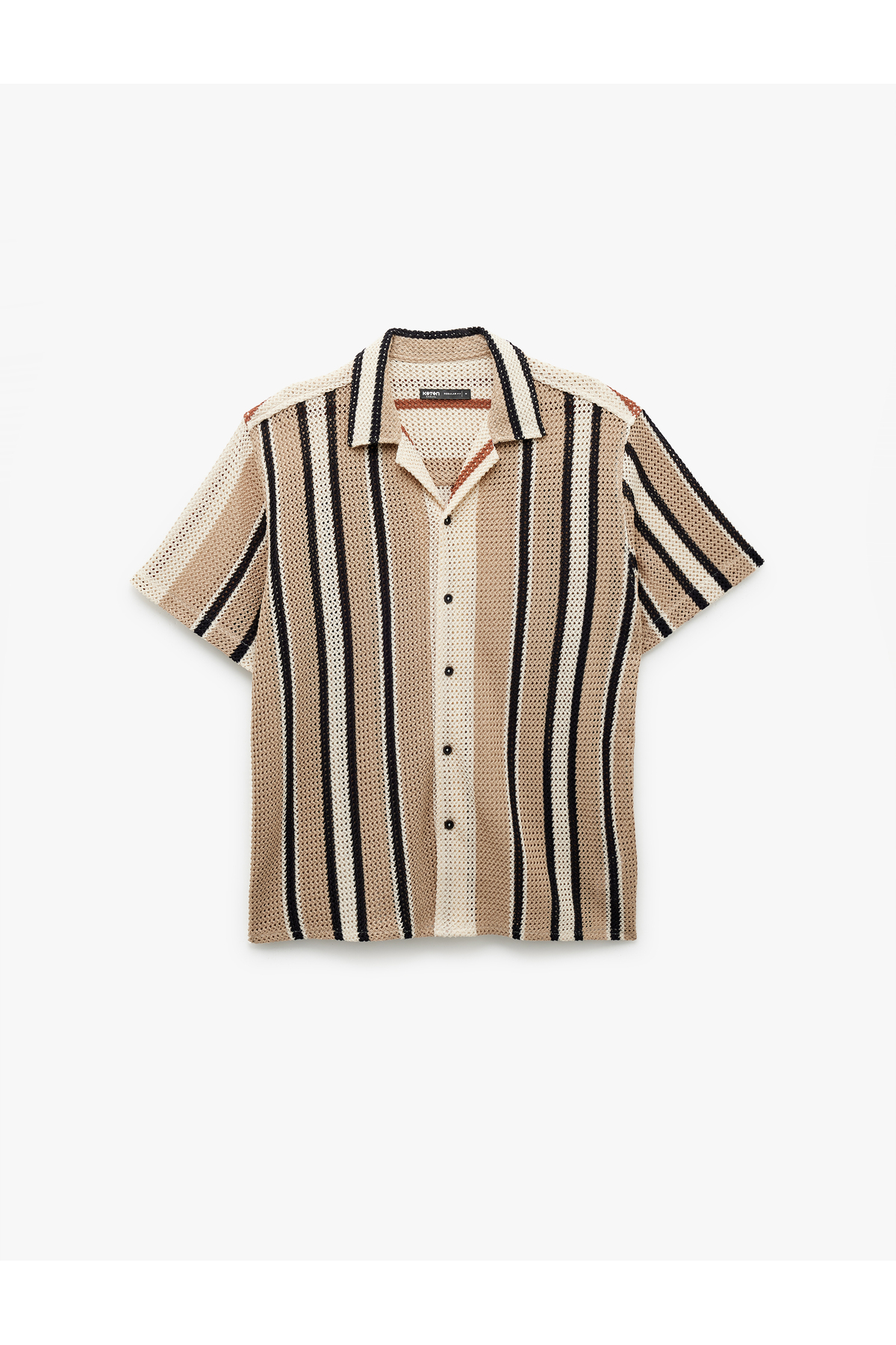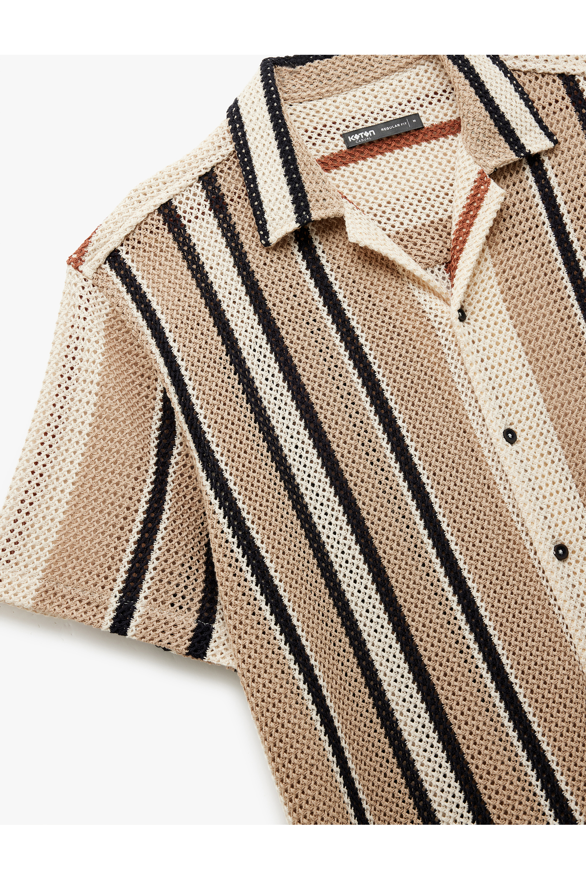 خرید اینترنتی پیراهن راه راه یقه کلاسیک باز و آستین کوتاه نخی معمولی برند کوتون Koton اورجینال از Trendyol نمایندگی ترکیه