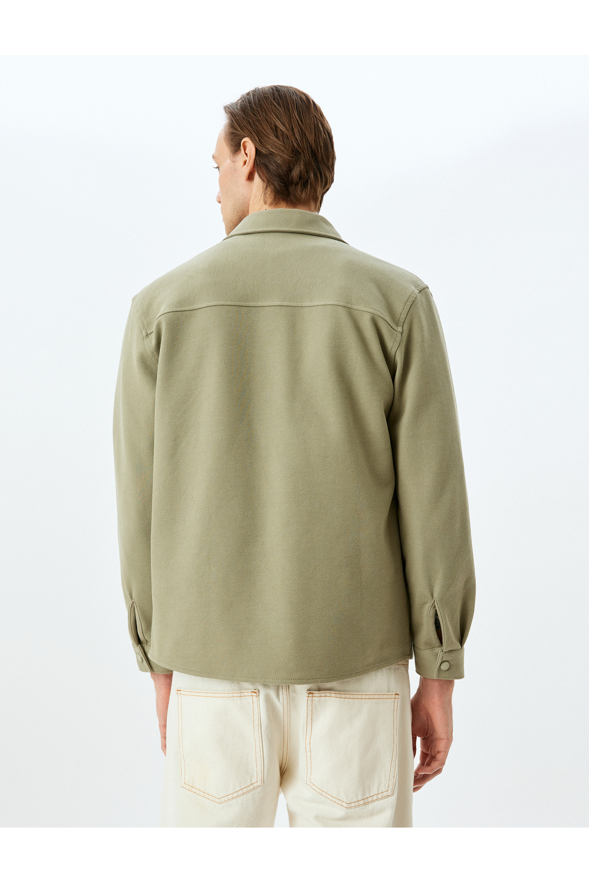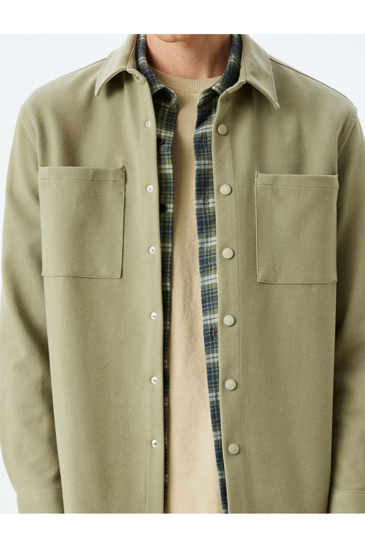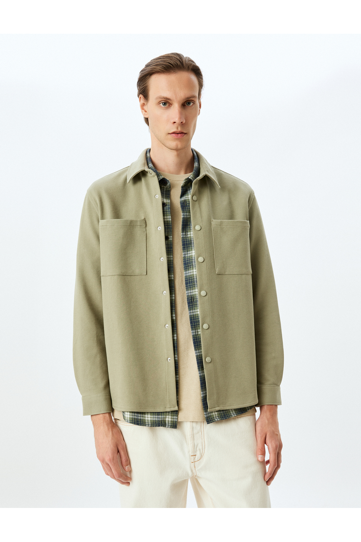 خرید اینترنتی پیراهن آستین بلند نخی طرح معمولی با دکمه فشاری و جیب برند کوتون Koton اورجینال از Koton نمایندگی ترکیه