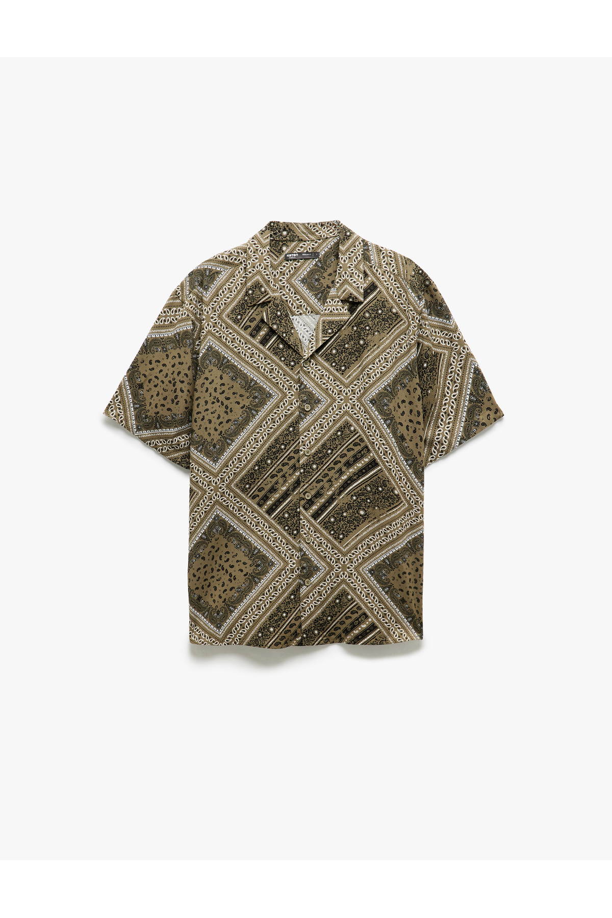 خرید اینترنتی پیراهن طرحدار قومی، آستین کوتاه ویسکوز، یقه گرد، فیت معمولی برند کوتون Koton اورجینال از Koton نمایندگی ترکیه