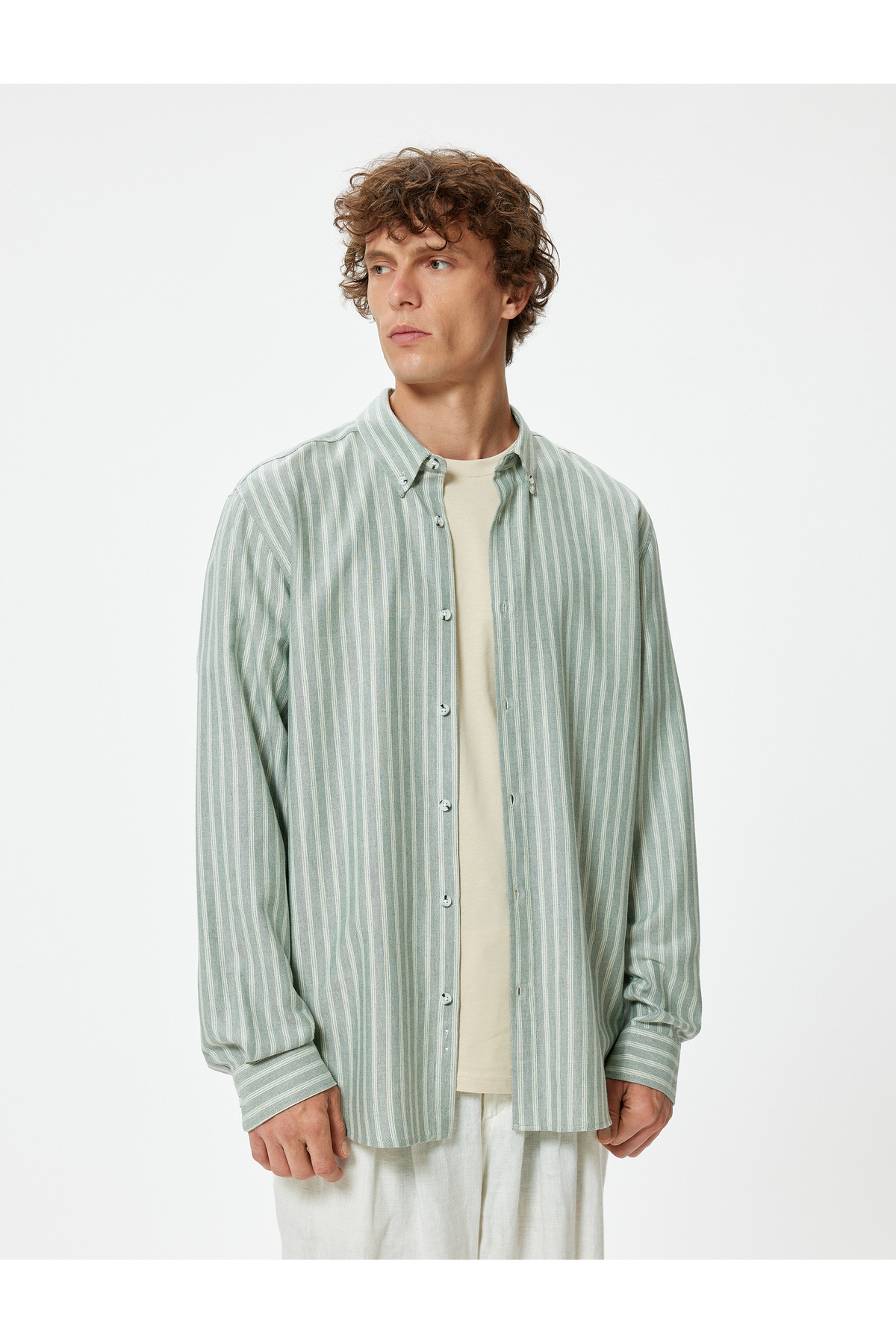 خرید اینترنتی پیراهن مردانه سایز معمولی، آستین بلند، یقه دکمهدار، جنس ترکیبی پنبه برند کوتون Koton اورجینال از Koton نمایندگی ترکیه