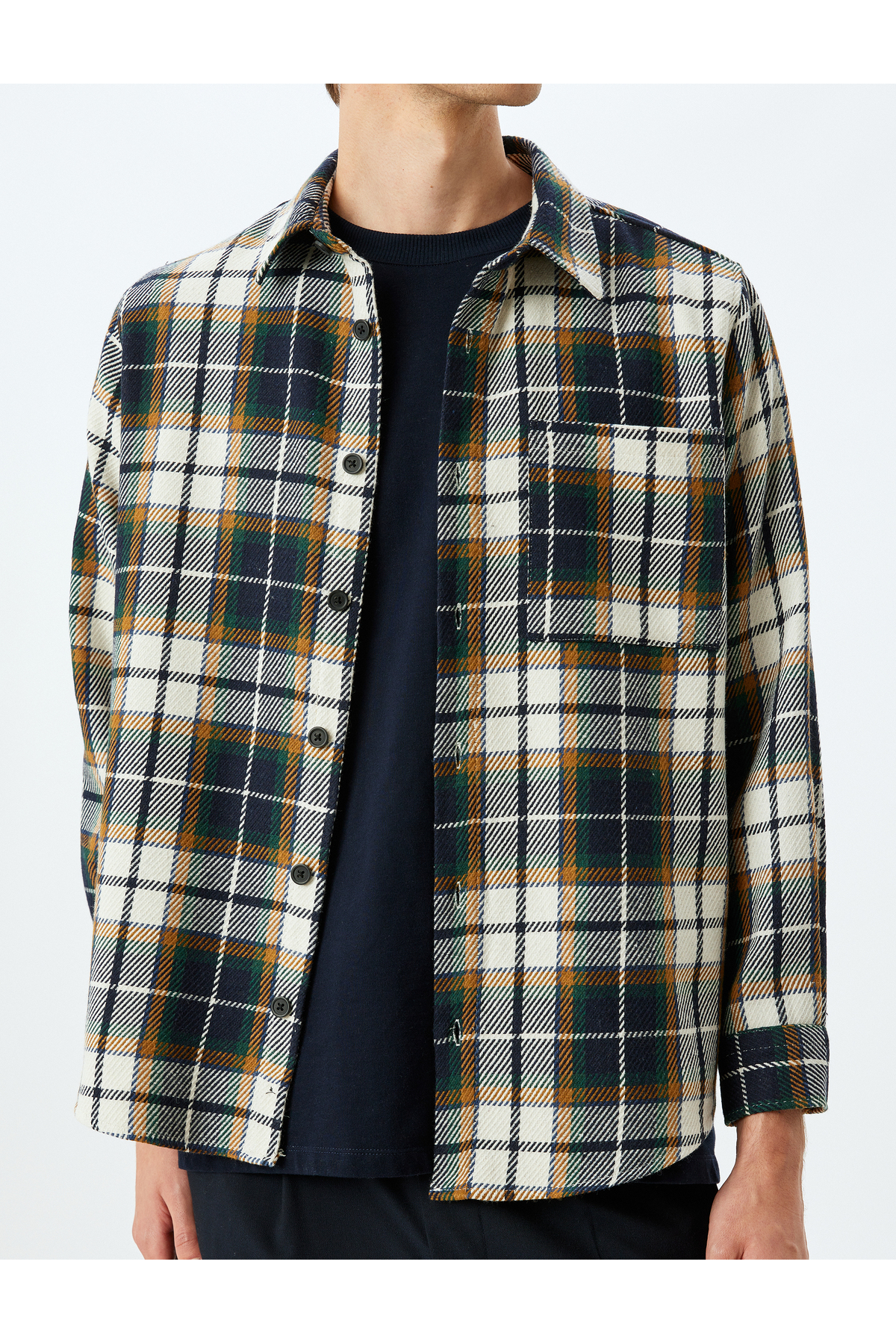 خرید اینترنتی پیراهن چهارخانه طرح چوب، آستین بلند، فیت معمولی و طرح ترکیبی پنبه، دارای جیب. برند کوتون Koton اورجینال از Koton نمایندگی ترکیه