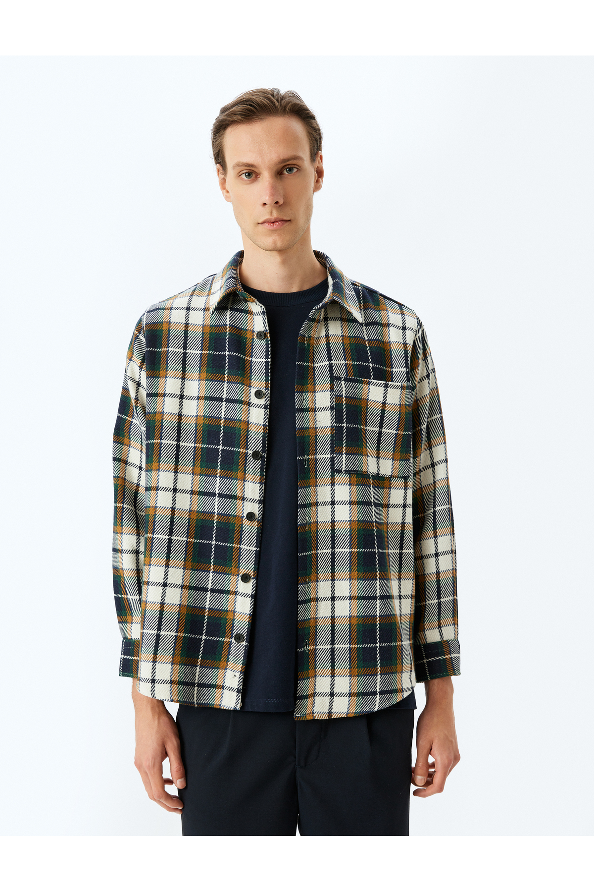 یک پیراهن آستین بلند، نخی، جیبدار و چهارخانه طرح چوب را با تیشرتهای ساده ترکیب کنید تا ظاهری کلیدی برای استایل روزمره ایجاد کنید! پیراهنهای چهارخانه، قطعاتی جاودانه، هر فصل جای خود را در لباسها پیدا میکنند و به استایل شما جلوهای متفاوت میبخشند.