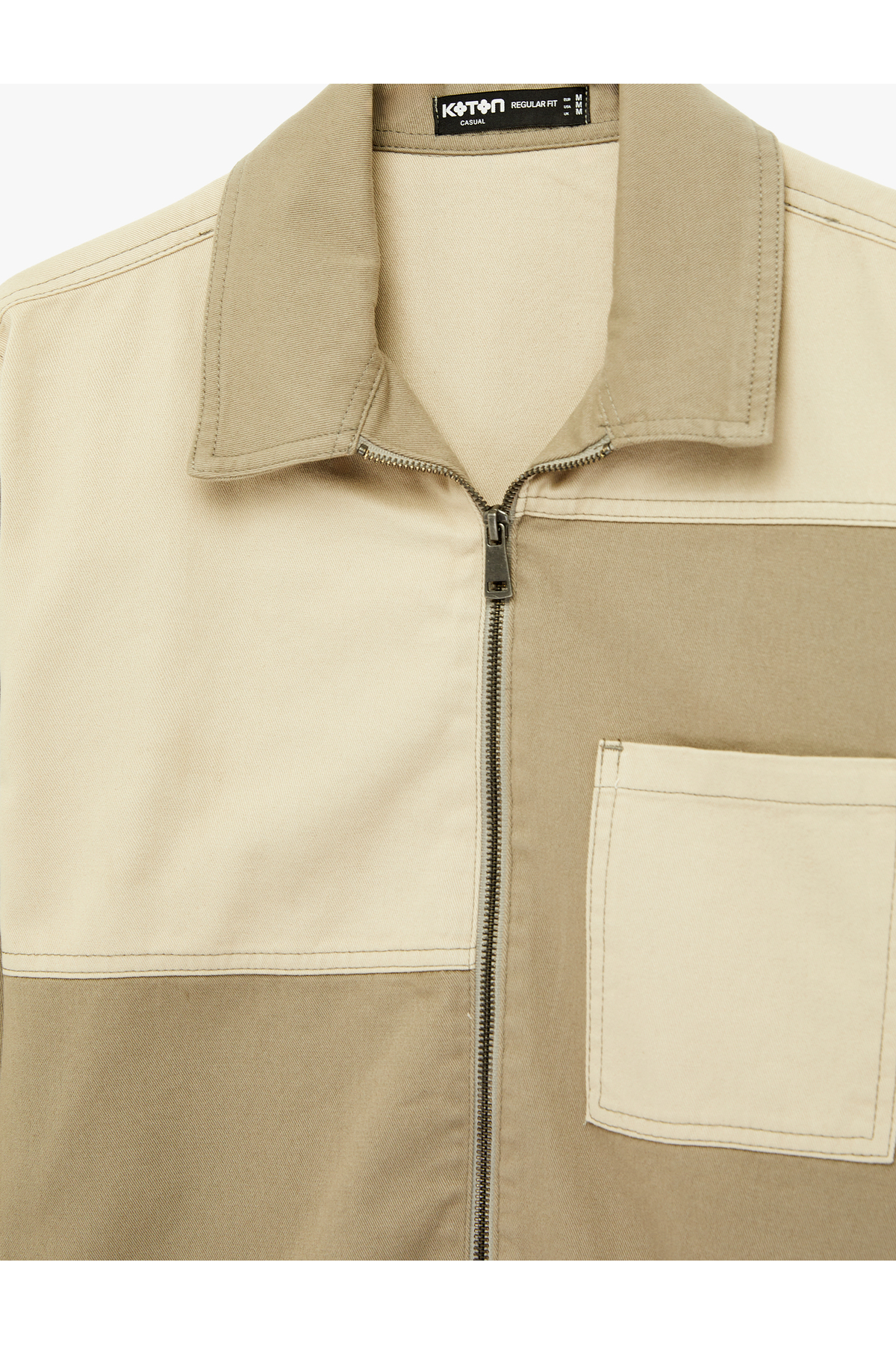 خرید اینترنتی ژاکت پیراهن گاباردین، آستین بلند، جیبدار، نخی، طرحدار، یقه کلاسیک، زیپدار. برند کوتون Koton اورجینال از Koton نمایندگی ترکیه