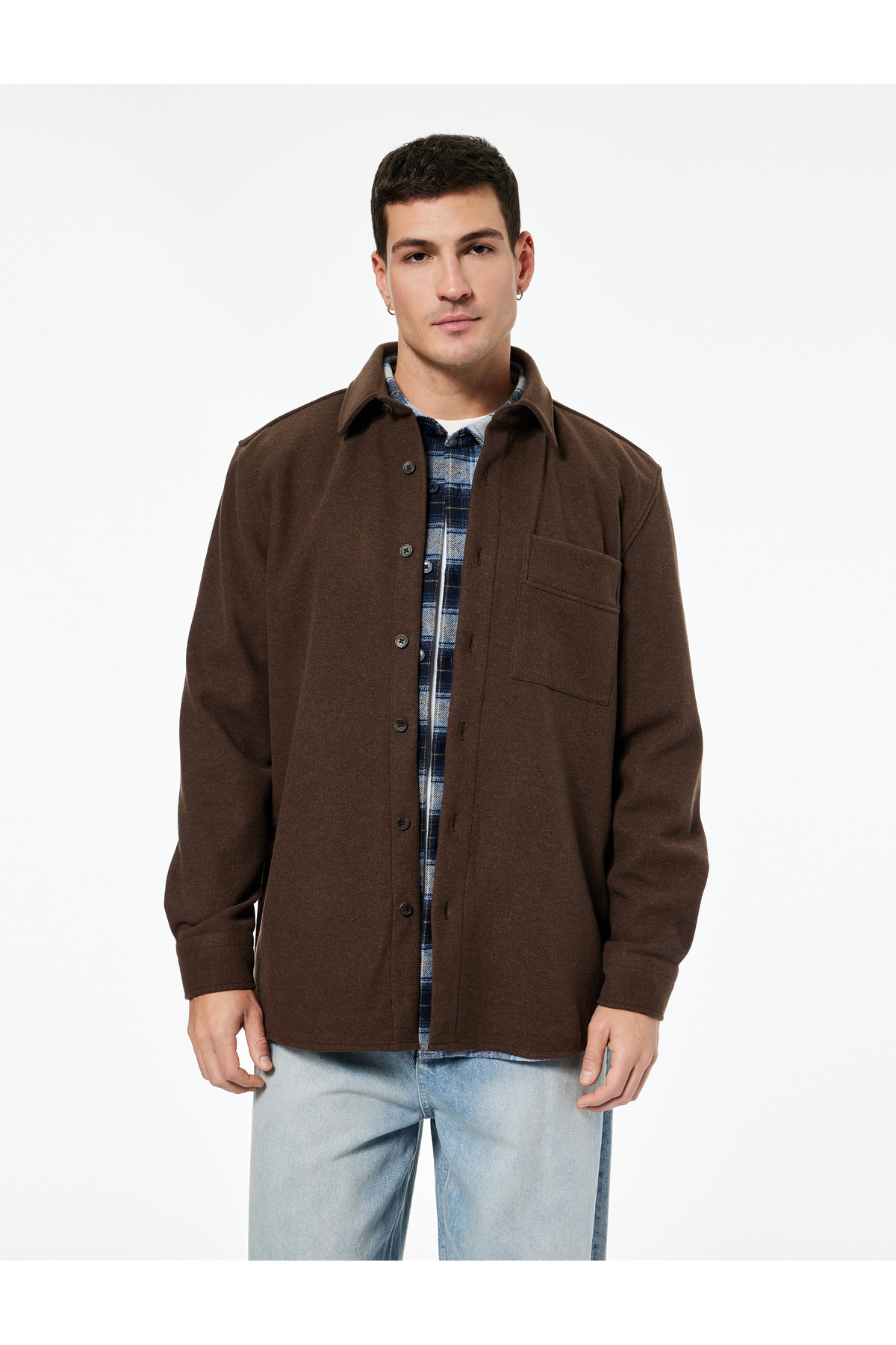 خرید اینترنتی ژاکت پیراهن آستین بلند ویسکوز طرح کلاسیک یقه دکمهدار با جزئیات جیبدار برند کوتون Koton اورجینال از Koton نمایندگی ترکیه