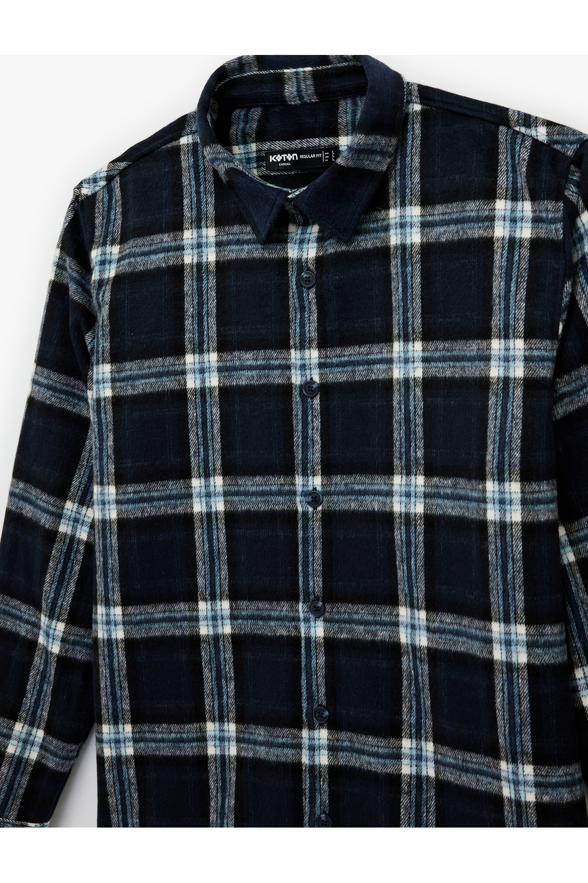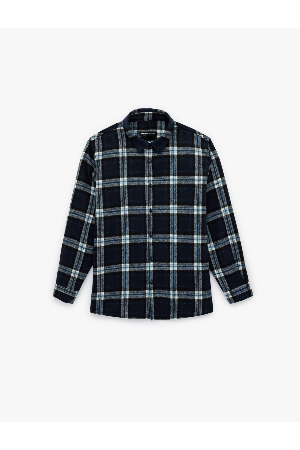کوتون پیراهن مردانه یقه اسکی کلاسیک یقه اسکی آستین بلند دکمه‌دار سایز معمولی
