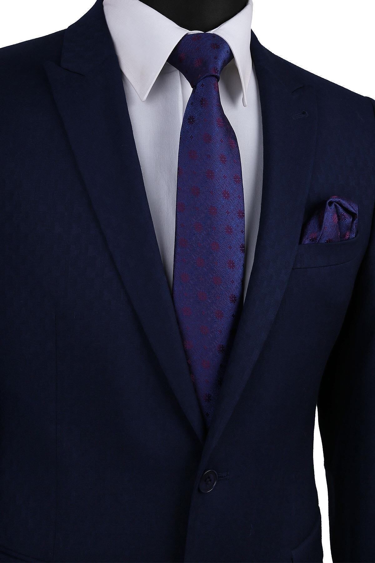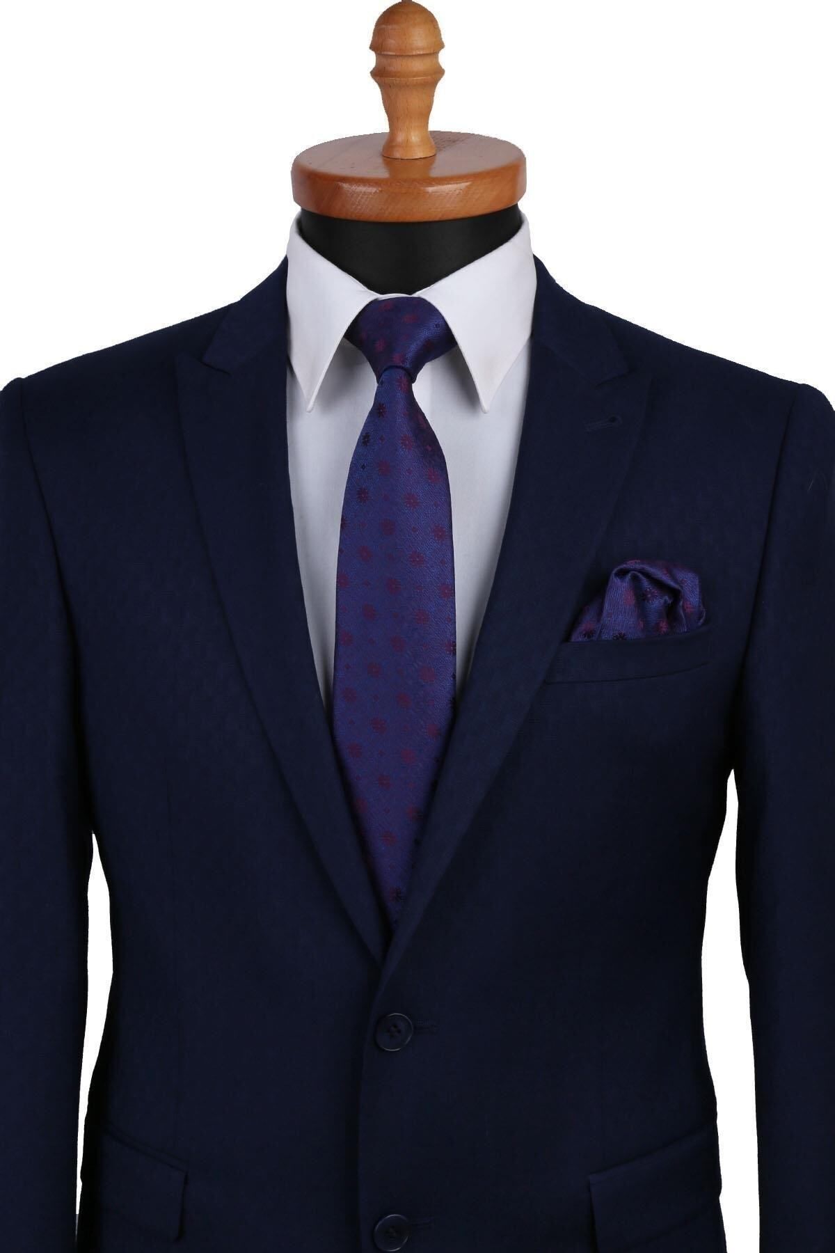خرید اینترنتی کراوات کلاسیک سرمهای – طرح گلدار و دستمال جیبی KK9484 برند Kravatkolik اورجینال از Kravatkolik نمایندگی ترکیه