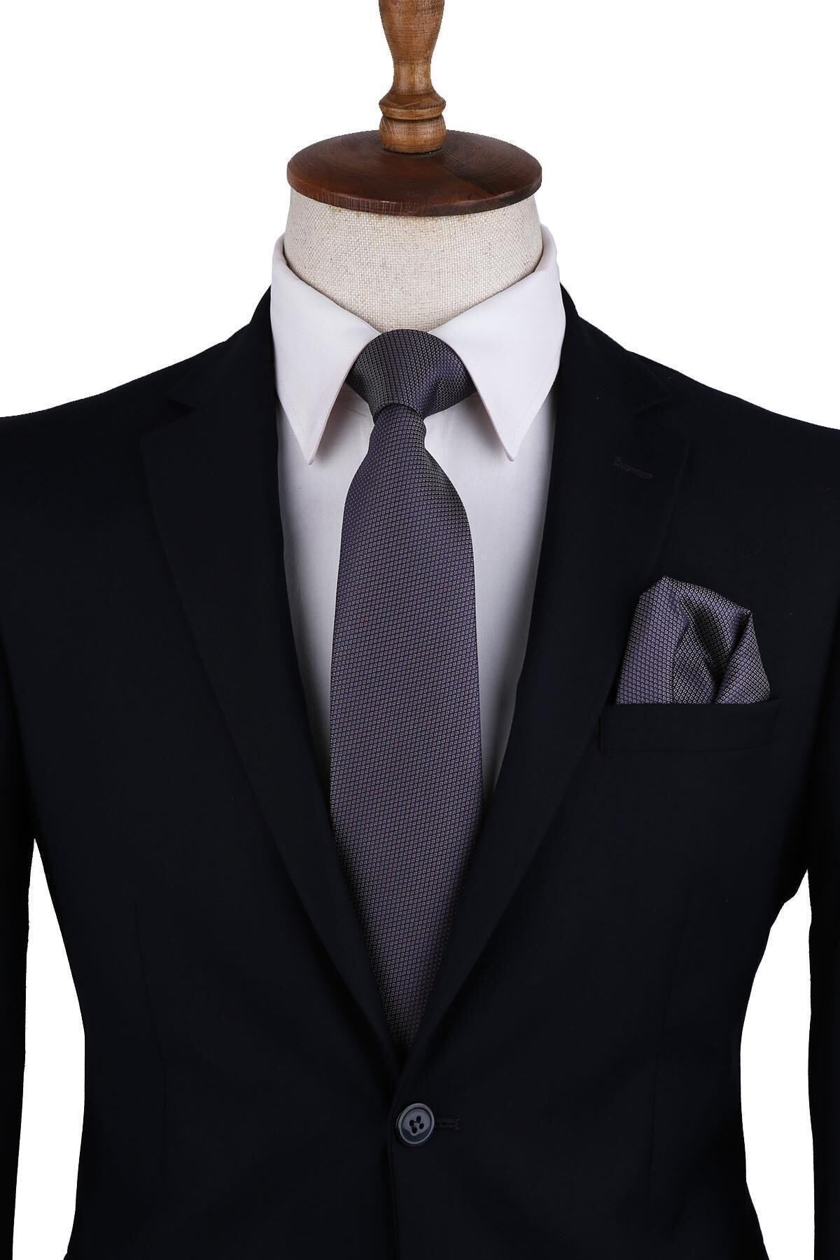 خرید اینترنتی کراوات کلاسیک مردانه خاکستری خالدار با دستمال جیبی KK10350 برند Kravatkolik اورجینال از Kravatkolik نمایندگی ترکیه