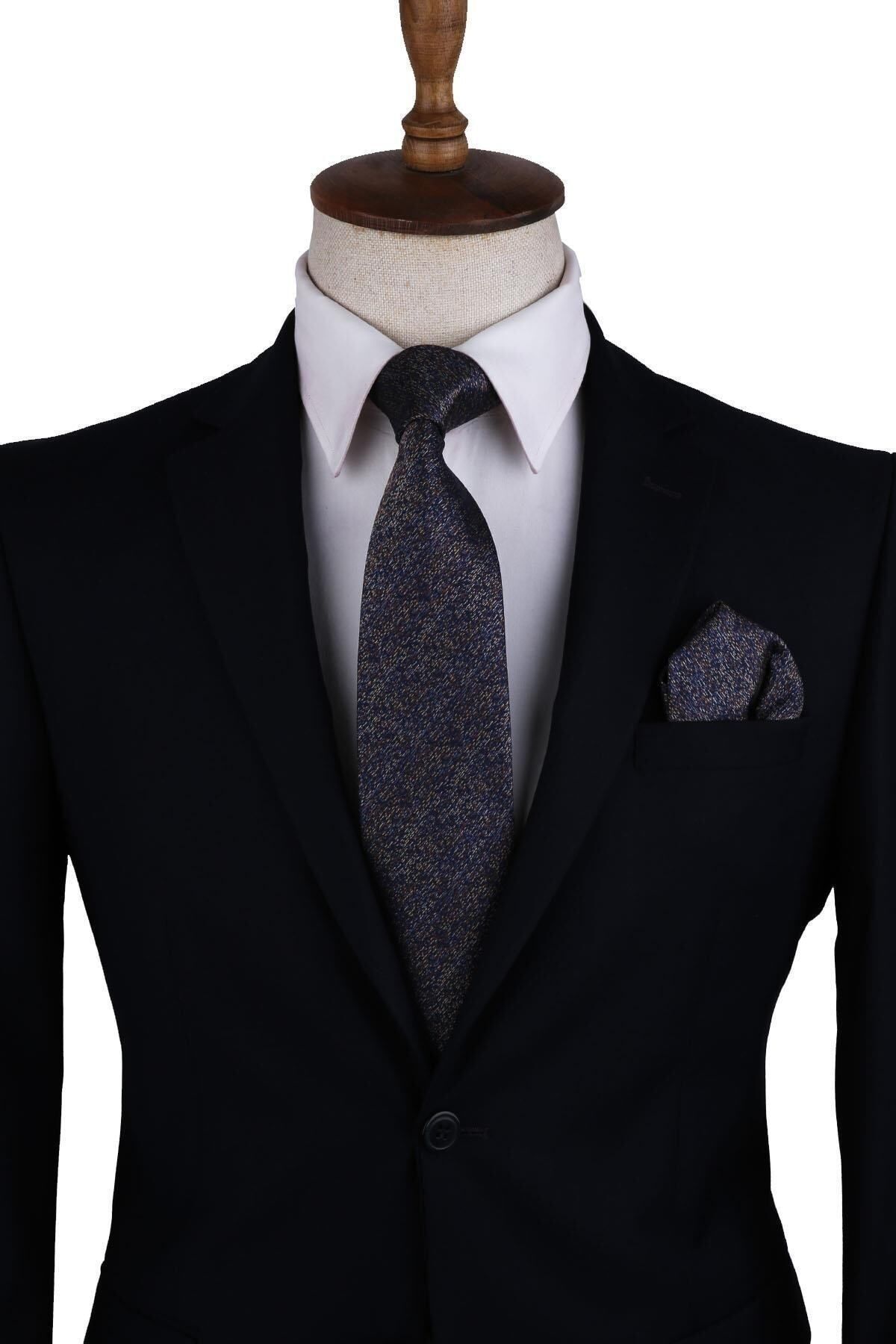 خرید اینترنتی کراوات کلاسیک مردانه سرمهای طرح شنی با دستمال جیبی KK10442 برند Kravatkolik اورجینال از Kravatkolik نمایندگی ترکیه