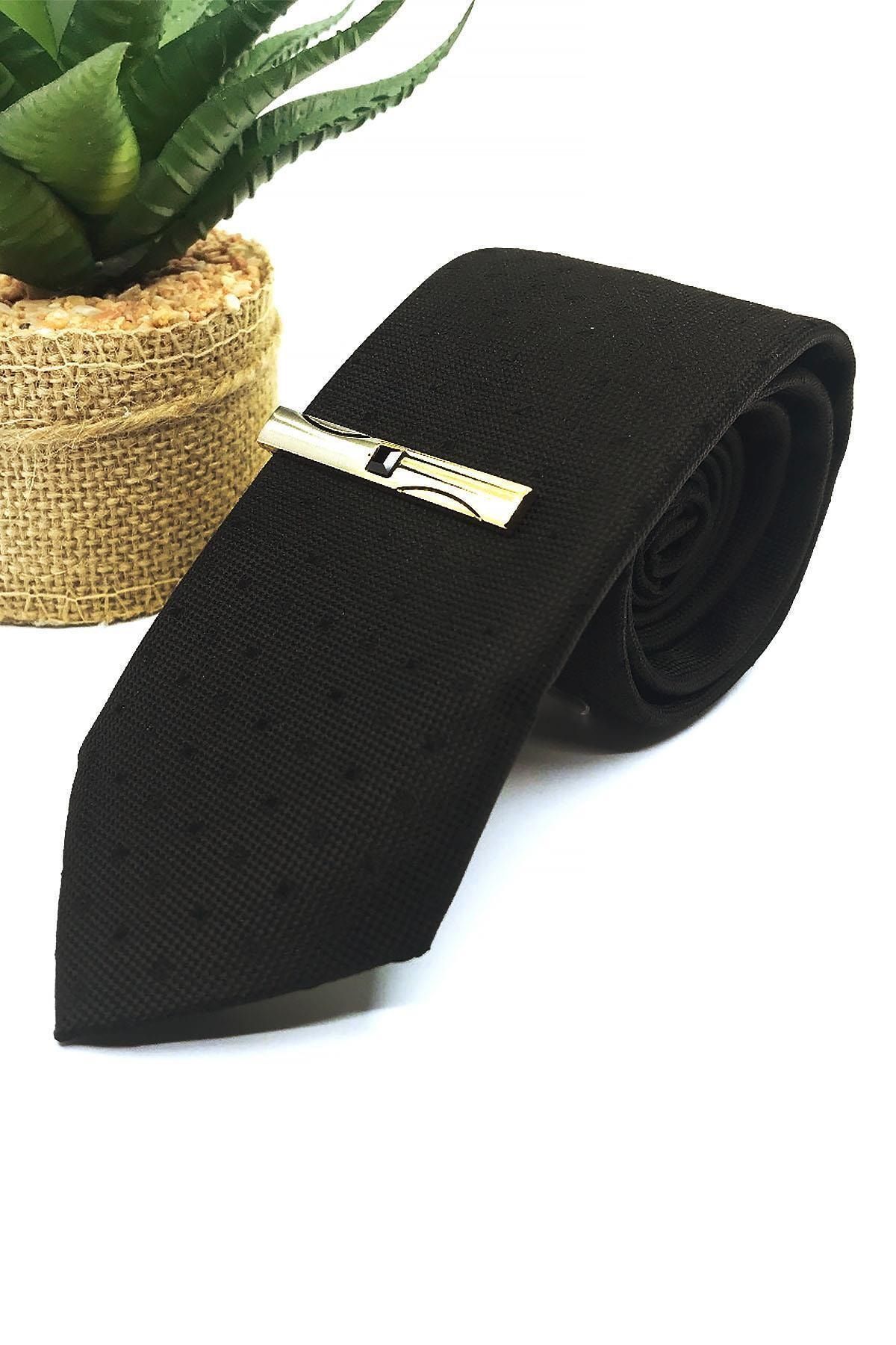 سنجاق کراوات نیمه مات طلایی رنگ با سنگهای مشکی Kıy507 مردانه | Kravatkolik KRVT8690002230566