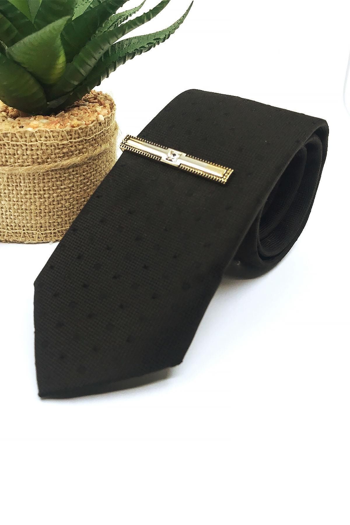سنجاق کراوات طرح قاب طلایی رنگ با سنگ سفید Kıy592 مردانه | Kravatkolik KRVT8690002230651