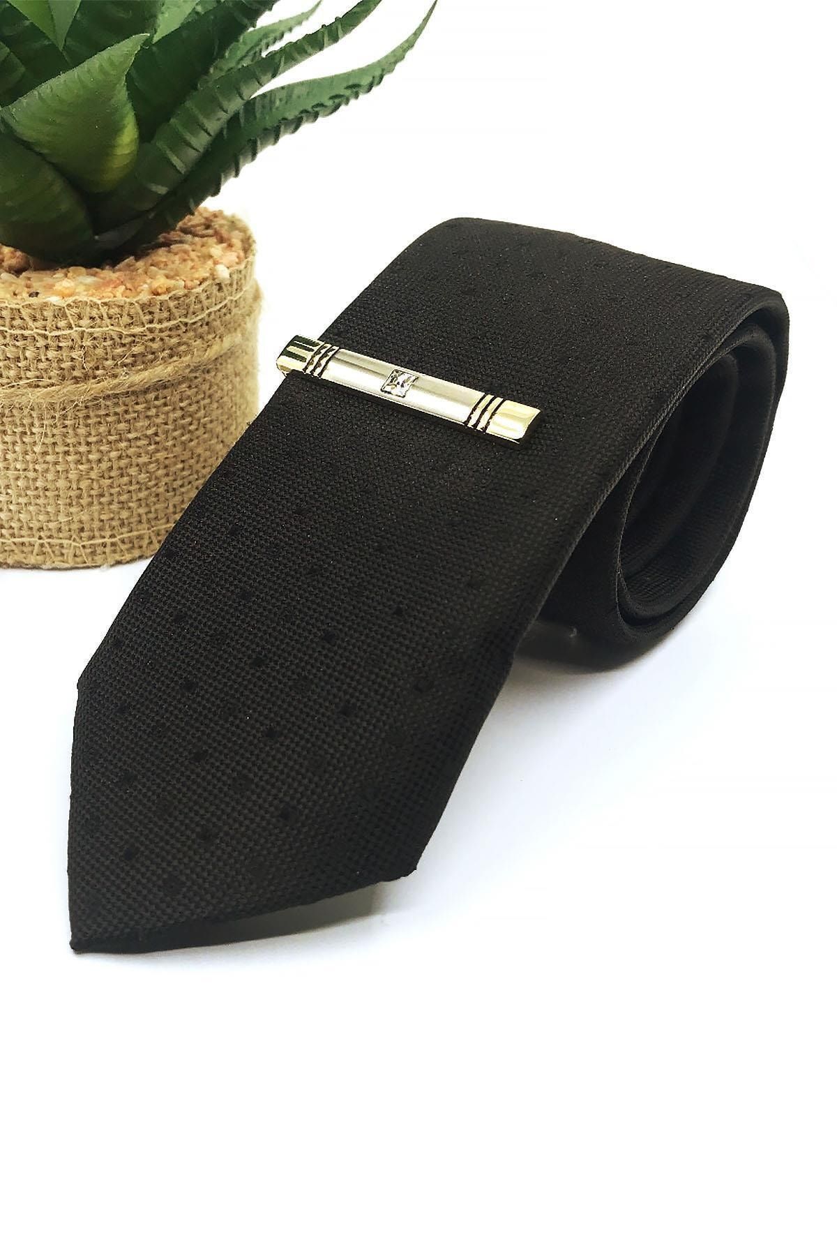 سنجاق کراوات نیمه مات طلایی رنگ با سنگهای سفید Kıy588 مردانه طرح دار | Kravatkolik KRVT8690002230647