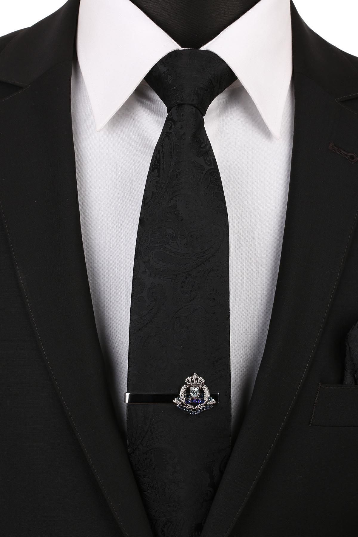 سنجاق کراوات طرح تاج پادشاه نقرهای رنگ Kıy128 مردانه راسته | Kravatkolik KRVT8690002230658