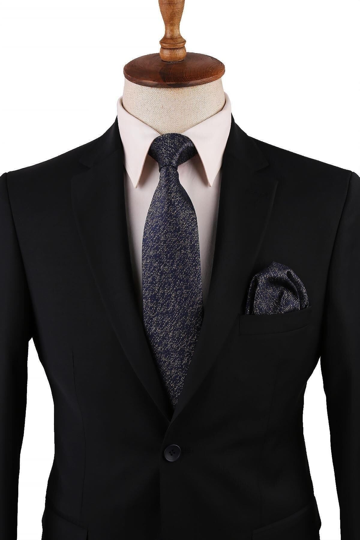 خرید اینترنتی کراوات کلاسیک سرمهای طرح خالخالی با دستمال جیبی KK10725 برند Kravatkolik اورجینال از Kravatkolik نمایندگی ترکیه