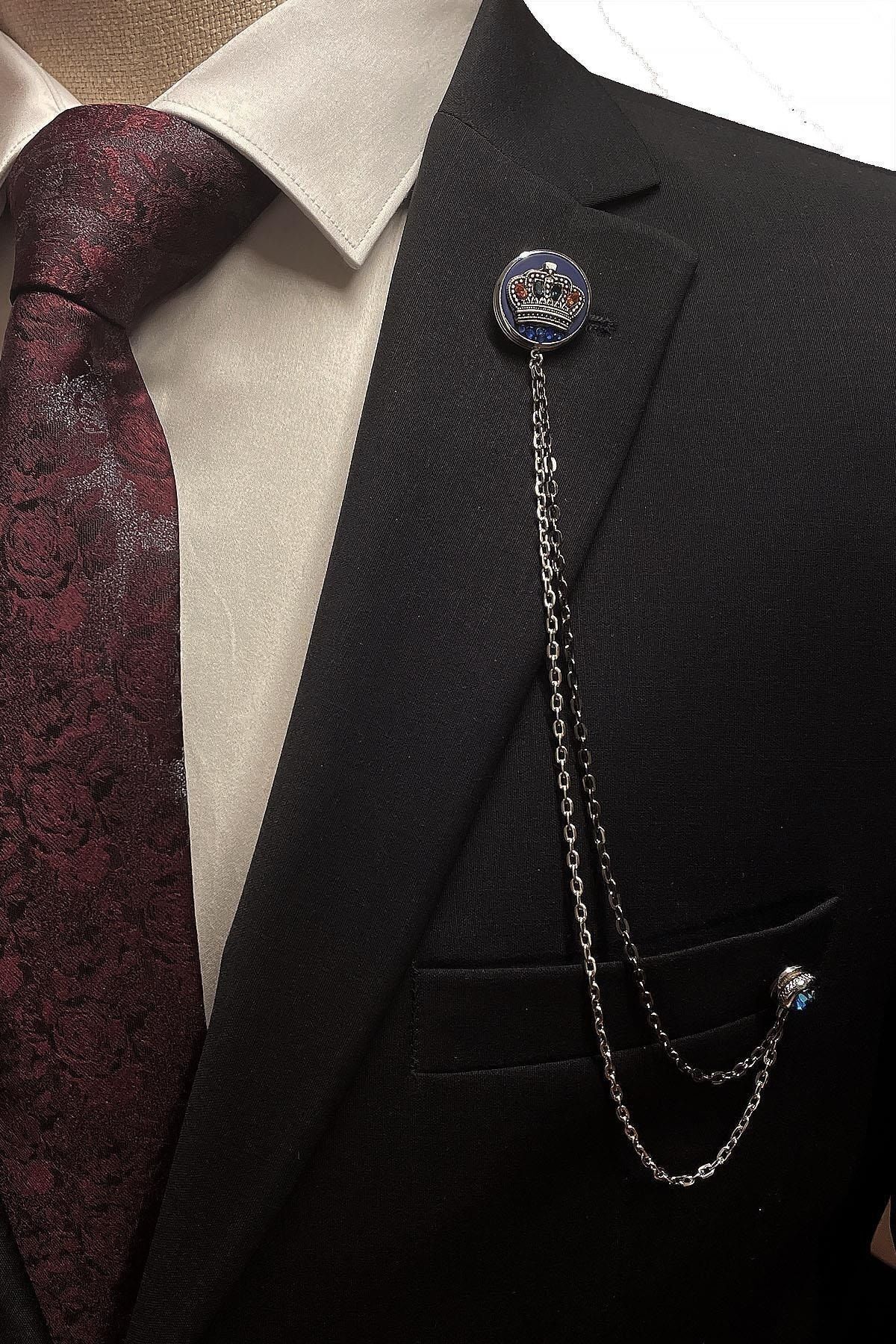 برچسب: سنجاق یقه کت و شلوار طرح تاج پادشاه نقرهای رنگ آبی YI361 مردانه