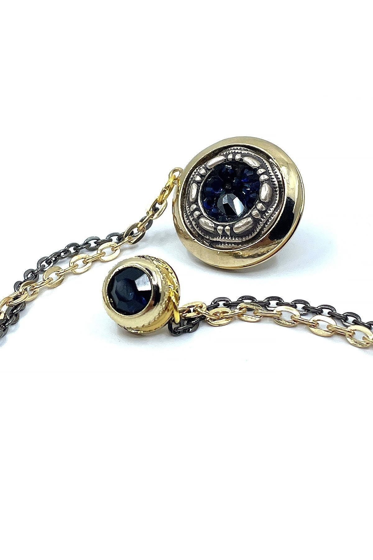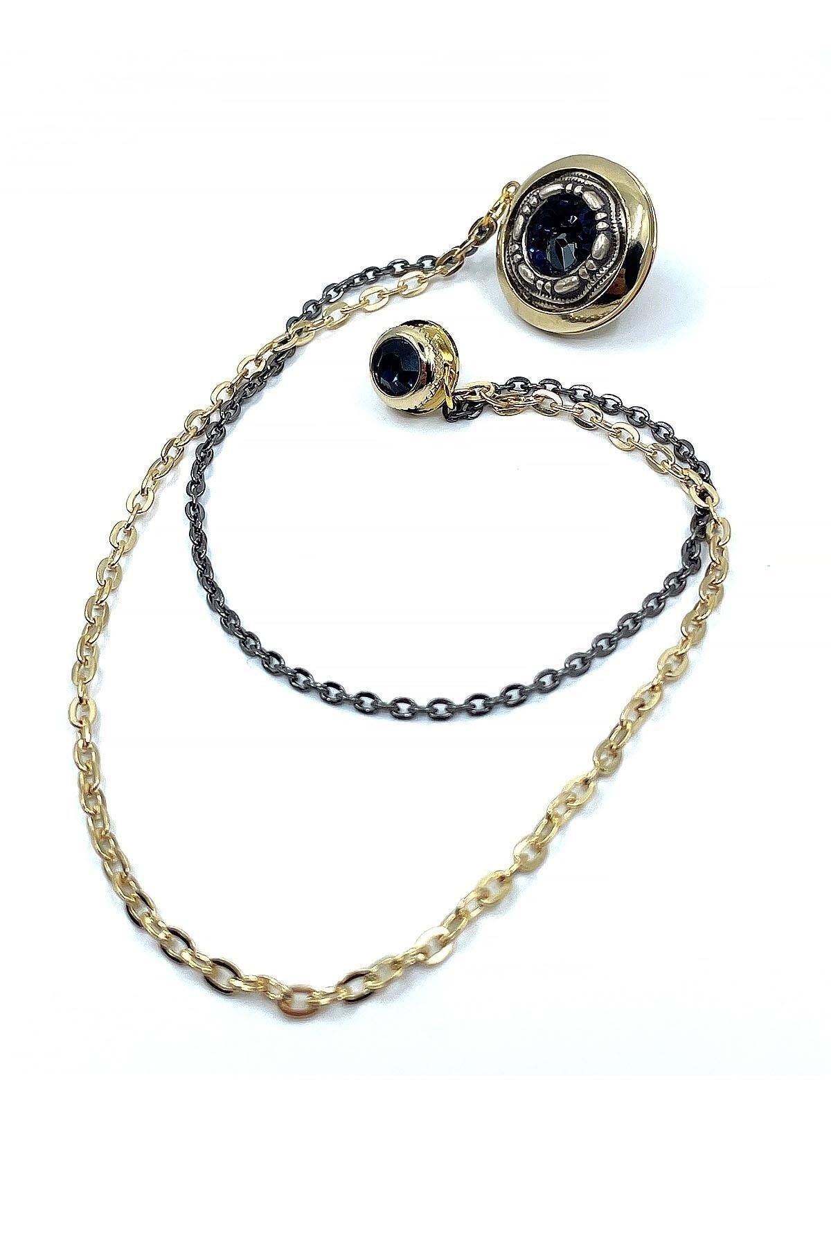 خرید اینترنتی سنجاق یقه کت زنجیری سنگی سرمهای طلایی رنگ Yı364 برند Kravatkolik اورجینال از Kravatkolik نمایندگی ترکیه