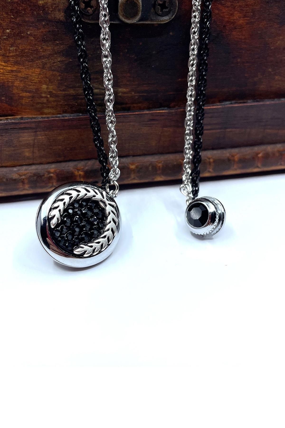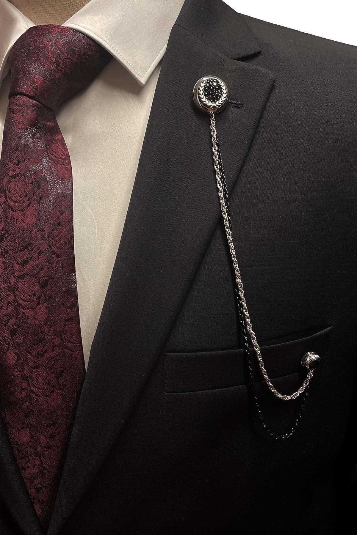سنجاق یقه کت زنجیری نقرهای رنگ از جنس سنگ هماتیت Yı369 مردانه راسته | Kravatkolik KRVT8690002232452