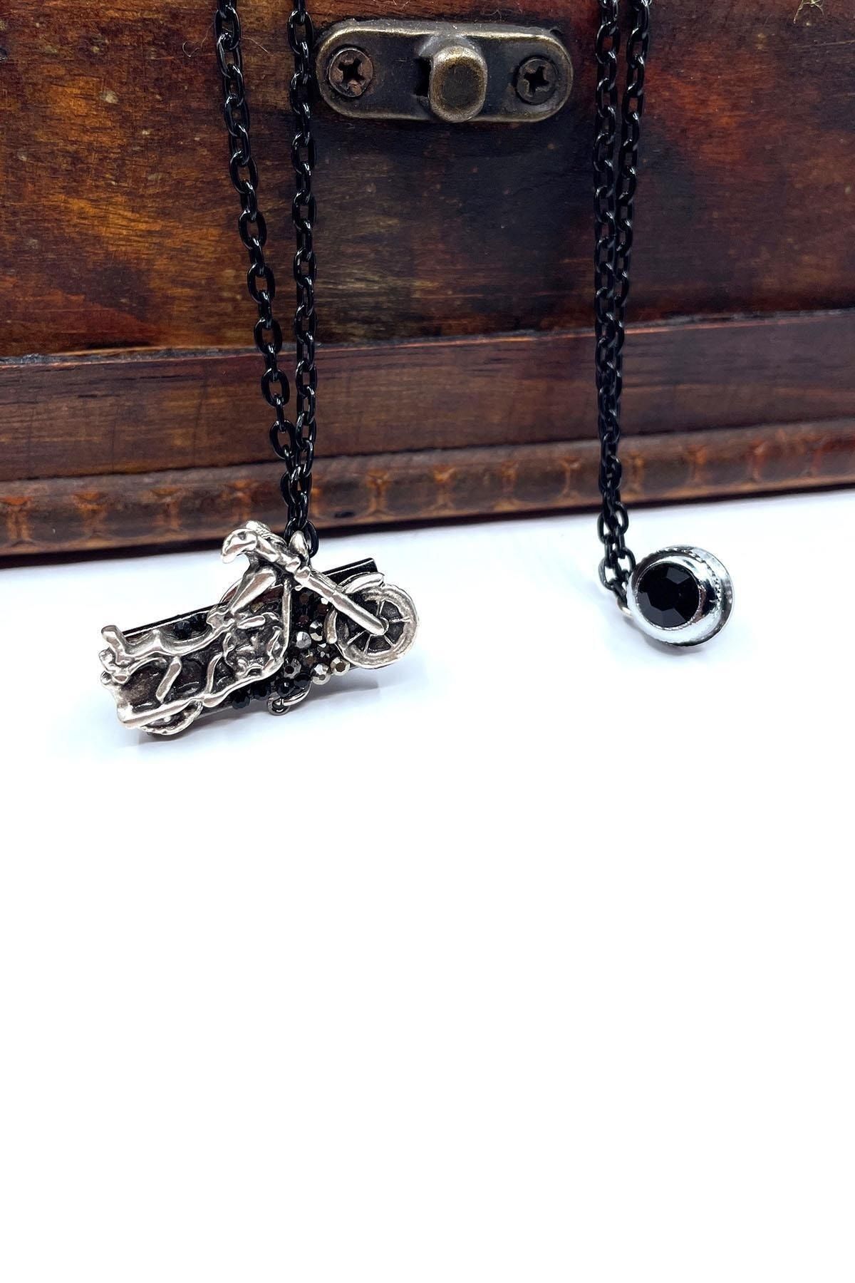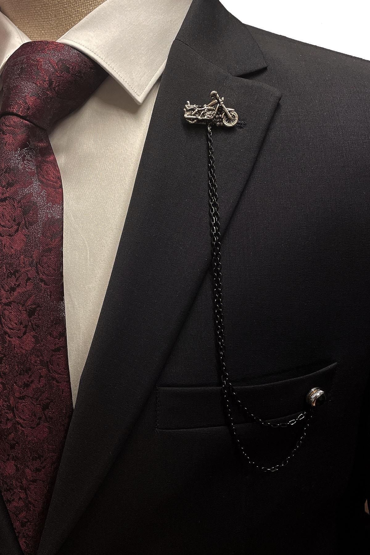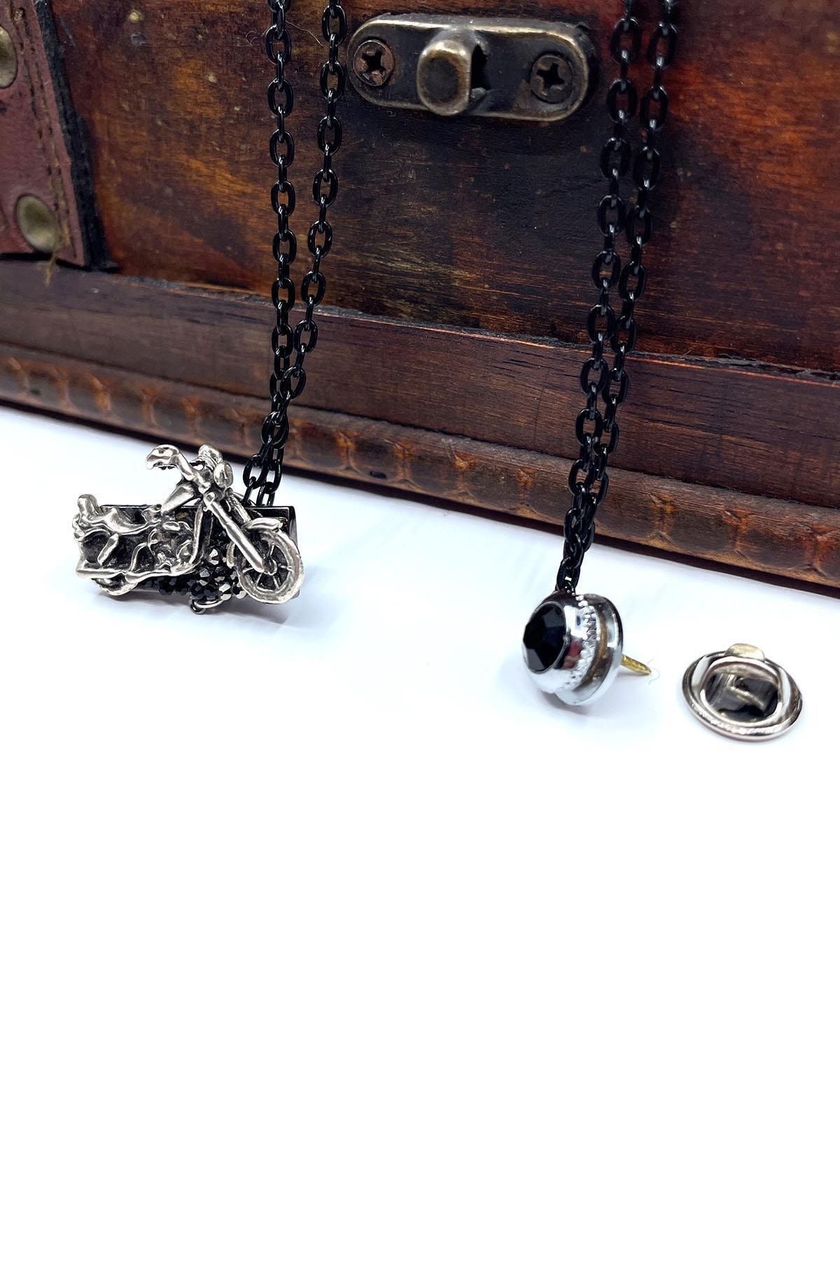 سنجاق یقه کت و شلوار طرح موتورسیکلت نقرهای با سنگهای مشکی YI373 مردانه | Kravatkolik KRVT8690002232456