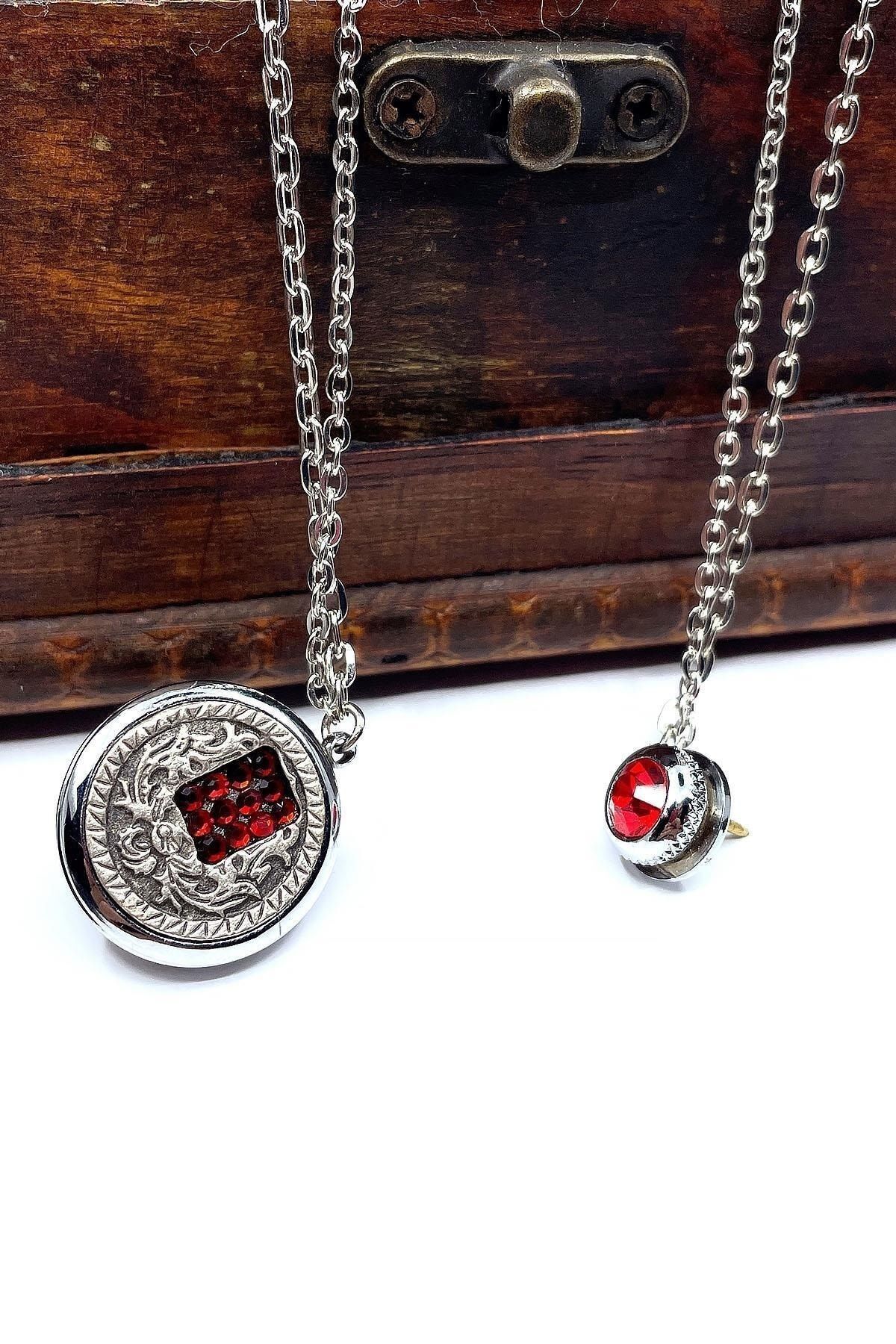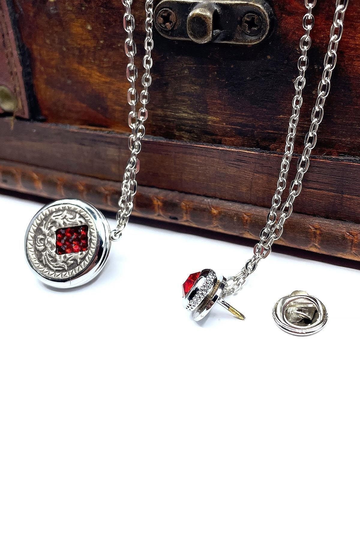 خرید اینترنتی سنجاق یقه کتی نقره‌ای رنگ با سنگ قرمز Yı376 برند Kravatkolik اورجینال از Kravatkolik نمایندگی ترکیه