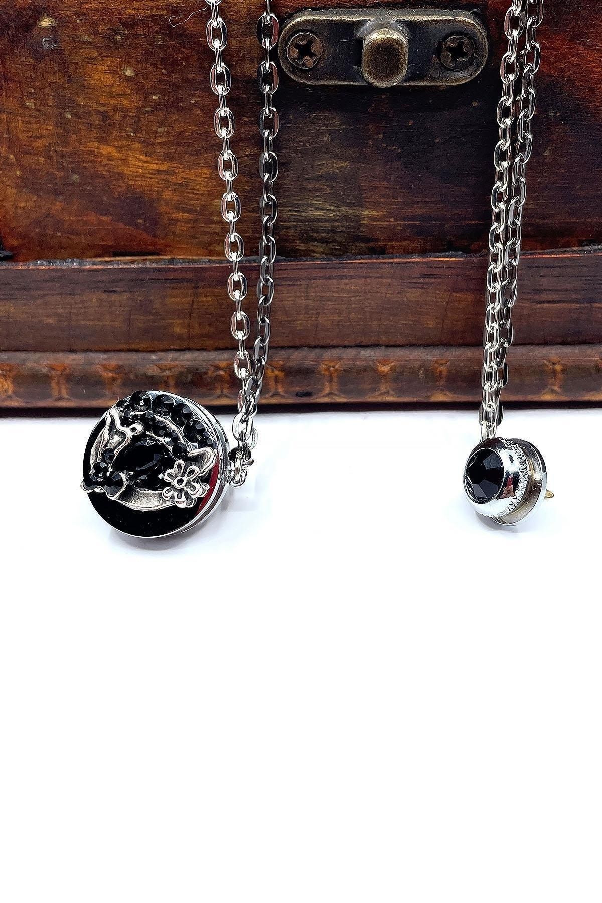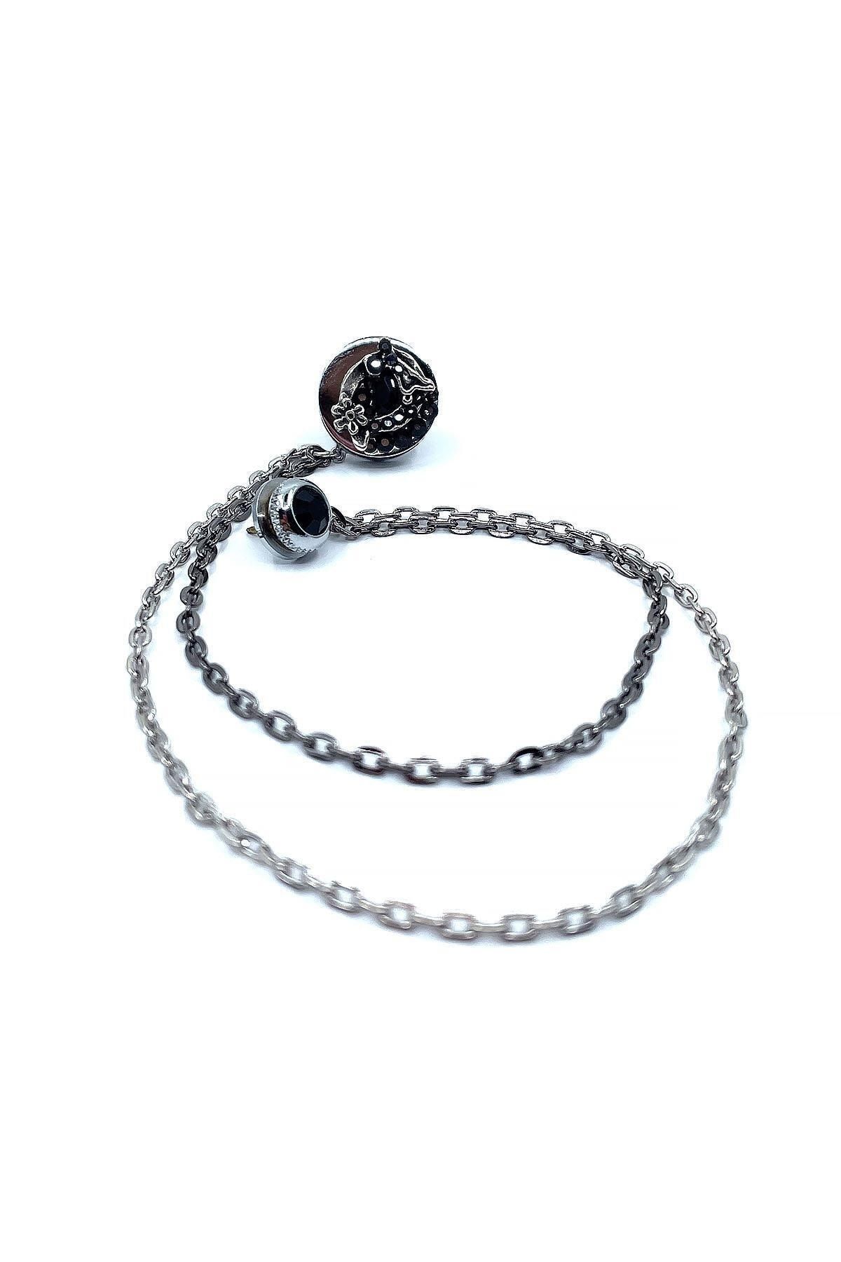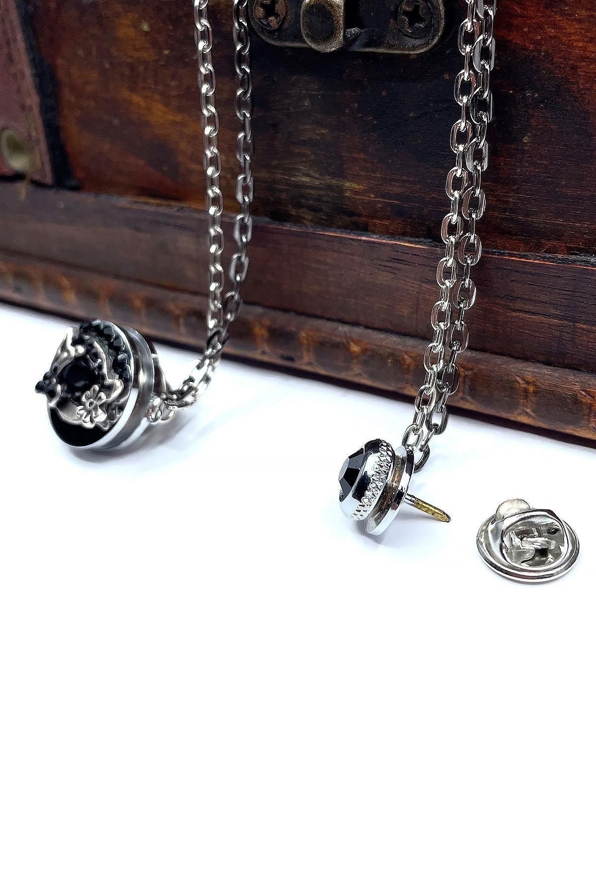 خرید اینترنتی سنجاق یقه کتی نقره‌ای طرح زنجیر سنگی مشکی Yı378 برند Kravatkolik اورجینال از Kravatkolik نمایندگی ترکیه