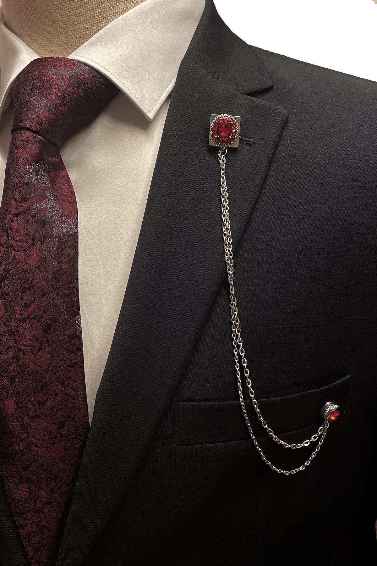 این سنجاق یقه کت نقرهای رنگ با سنگهای قرمز، با طراحی شیک و زیبا، مکمل استایل شما در هر مراسم رسمی یا ویژهای است.
