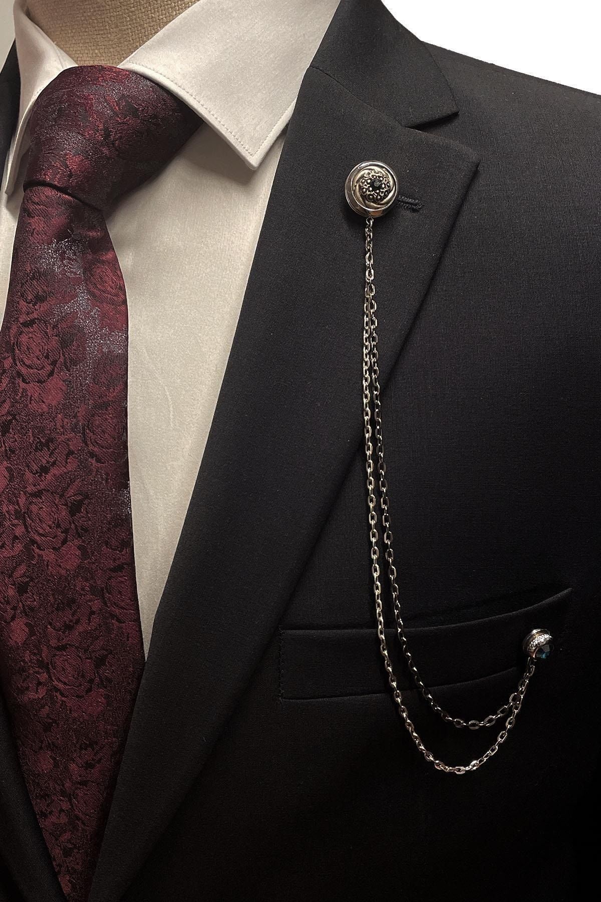 برچسب: پین یقه کت زنجیری سنگی مشکی نقرهای رنگ YI385 مردانه